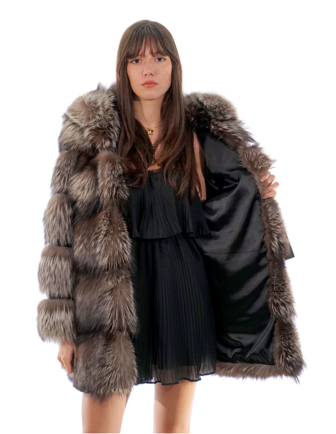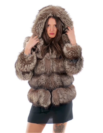 Vollfell-Fuchspelzjacke in horizontaler Verarbeitung mit Fuchspelz gefütterter Kapuze. Unsere Fuchspelze sind Produkte aus unserer Werkstatt und daher einzigartige und exklusive Fuchsjacken. Die Fähigkeit, unsere Pelze in höchster Qualität herzustellen, ermöglicht es uns, Angebote zu unterschiedlichen Preisen zu unterbreiten, wobei für verschiedene Anlässe stets günstige Preise verfügbar sind. Darüber hinaus garantieren unsere Labore und unsere Zusammenarbeit einen Fuchspelz von unbestrittener Qualität, 100 % Made in Italy. Die hierfür verwendete Fuchspelzqualität ist eine Fuchspelzjacke mit Fellen der Signatur InModa Pellicceria Second Life. Die Fuchspelzjacke präsentiert sich in horizontaler Verarbeitung mit Echtledertransport, 80 Zentimeter lang, mit Außentaschen, Verschluss mit Innenhaken, langen Ärmeln mit Kapuze und Fuchspelzfutter, in horizontaler Verarbeitung alles in silbergrauer Farbe. .