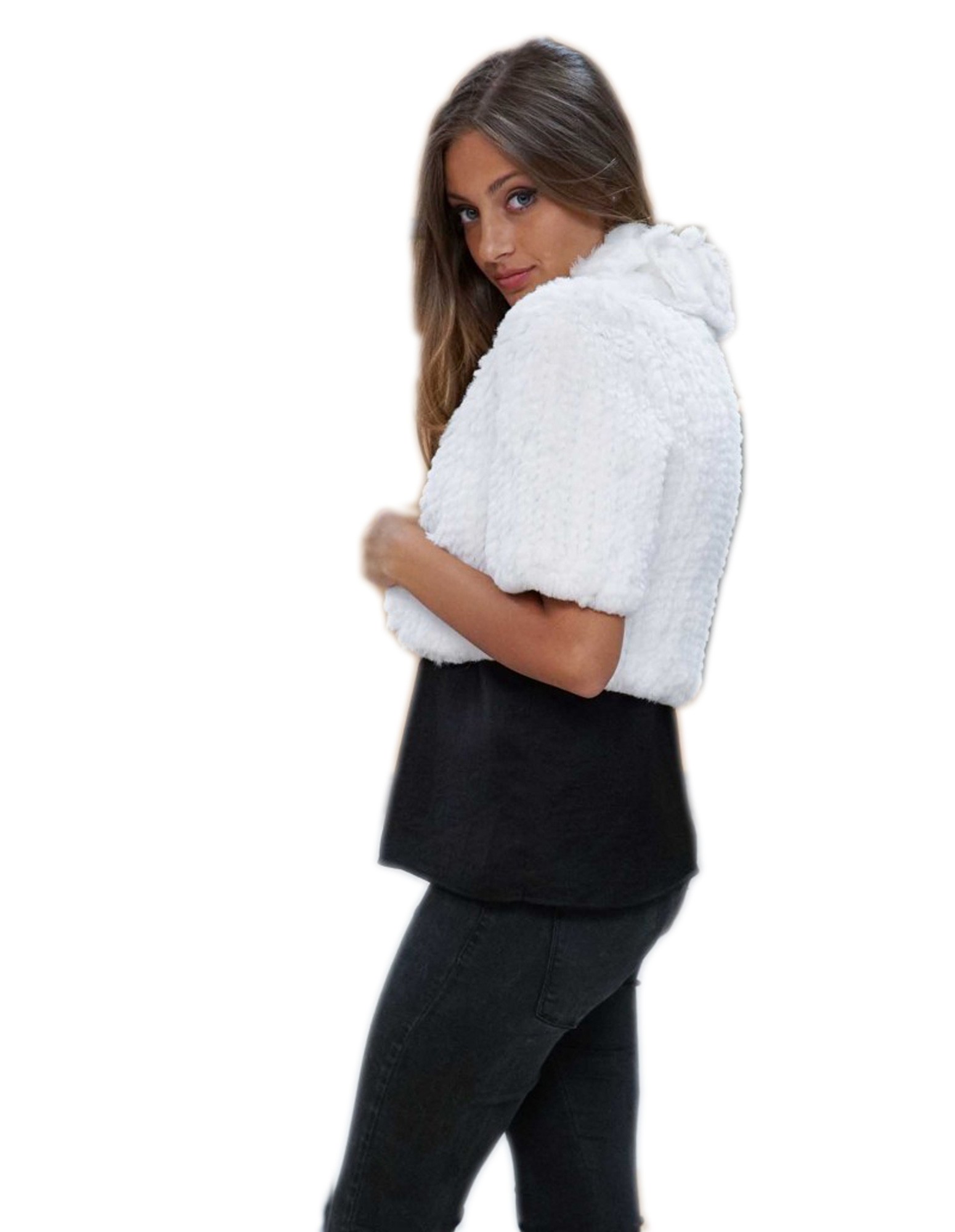Weißes Kaninchen Pelzjacke mit Hals und zurück zu seinem geformten rosa Stoff
