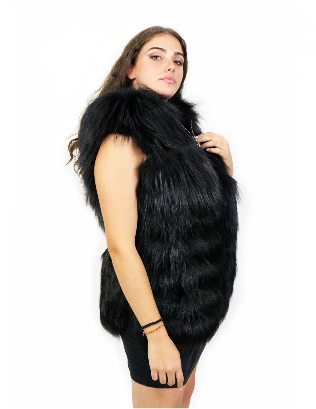 Fuchspelzweste mit ganzen Fellen. Unsere Fuchspelze sind Produktionen in unseren Werkstätten, daher eine einzigartige und exklusive Fuchsjacke. Die Möglichkeit, unsere Pelze in höchster Qualität herzustellen, ermöglicht es uns, Angebote zu unterschiedlichen Preisen mit verschiedenen Gelegenheiten zu immer günstigen Preisen zu machen. Darüber hinaus garantieren unsere Labors und unsere Kooperationen ein Fuchspelz von unbestrittener Qualität, das zu 100 % in Italien hergestellt wird. Die Qualität des dafür verwendeten Fuchspelzes ist eine Fuchspelzweste mit Häuten der Marke InModa Pellicceria. Die Weste aus Fuchspelz und Einsatz aus echtem schwarzem Leder wird mit Außentaschen, Reißverschluss und Kapuze mit Leder- und Außenpelzfutter und in schwarzer Farbe geliefert