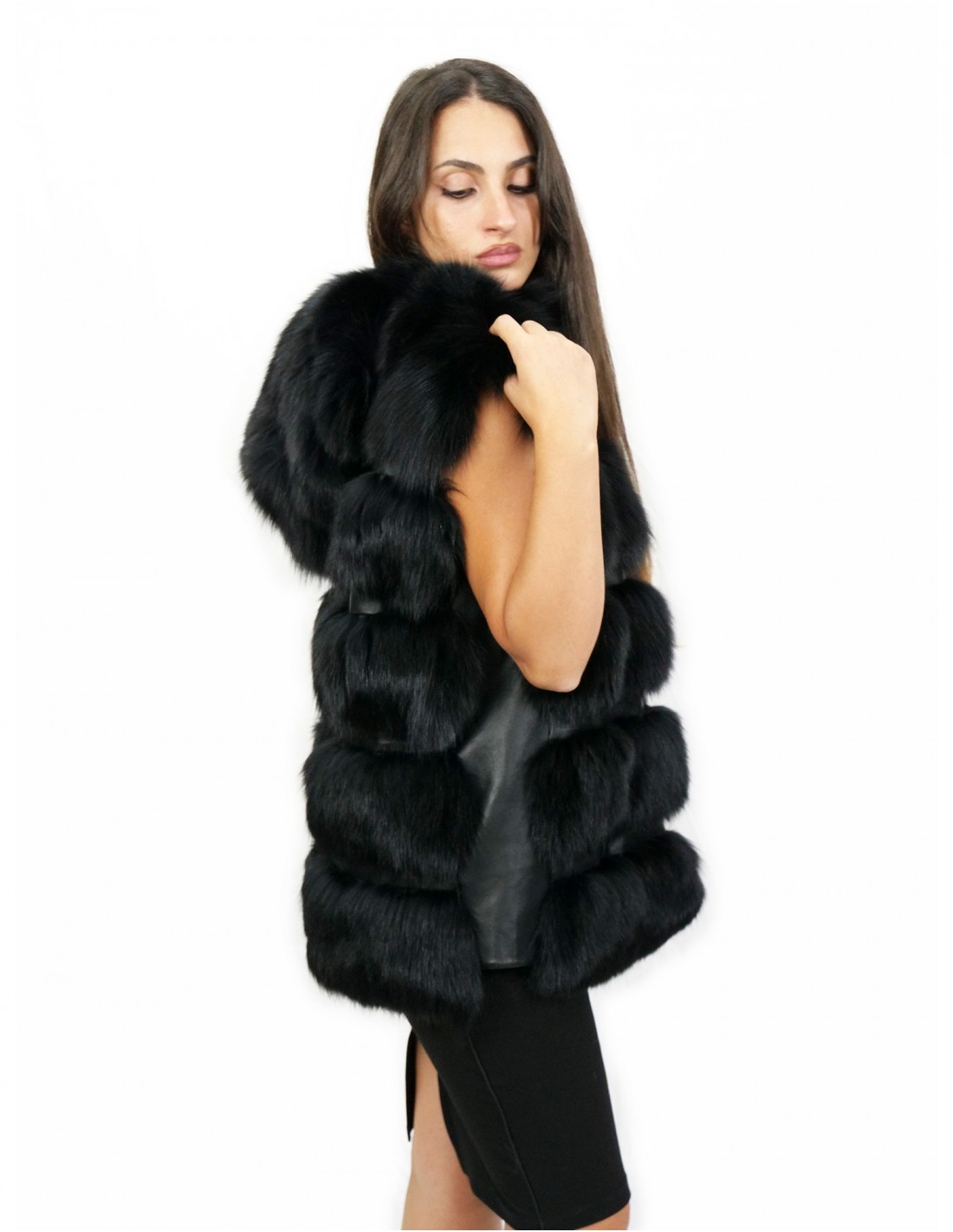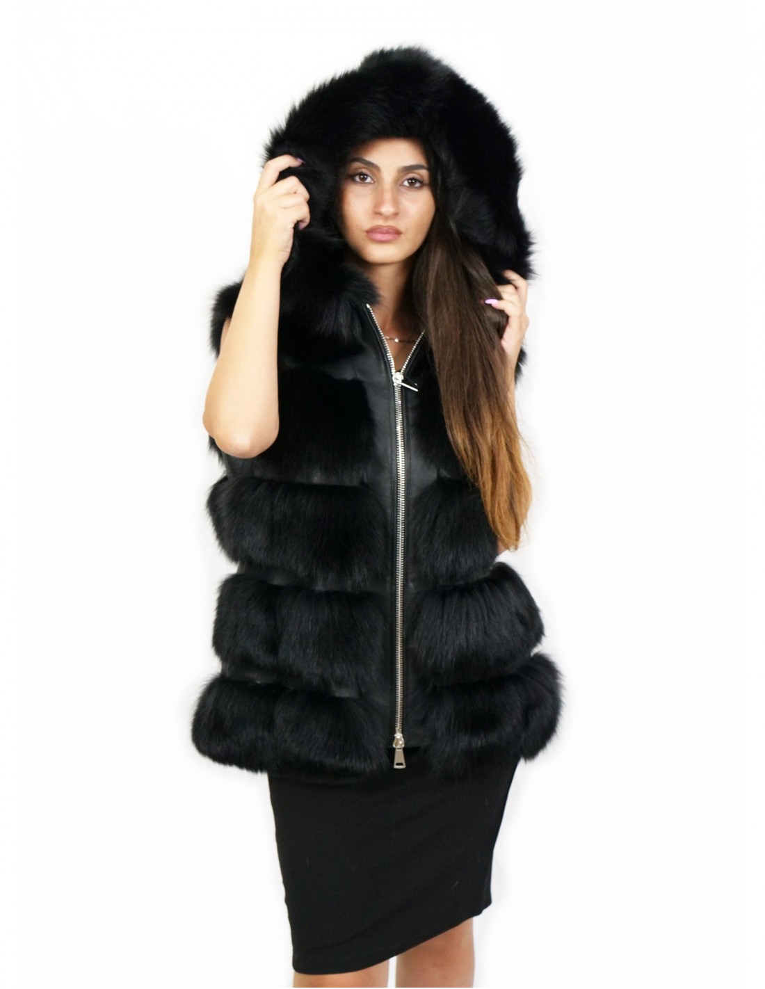 Fuchspelzweste mit ganzen Fellen. Unsere Fuchspelze sind Produktionen in unseren Werkstätten, daher eine einzigartige und exklusive Fuchsjacke. Die Möglichkeit, unsere Pelze in höchster Qualität herzustellen, ermöglicht es uns, Angebote zu unterschiedlichen Preisen mit verschiedenen Gelegenheiten zu immer günstigen Preisen zu machen. Darüber hinaus garantieren unsere Labors und unsere Kooperationen ein Fuchspelz von unbestrittener Qualität, das zu 100 % in Italien hergestellt wird. Die Qualität des dafür verwendeten Fuchspelzes ist eine Fuchspelzweste mit Häuten der Marke InModa Pellicceria. Die Weste aus Fuchspelz und Einsatz aus echtem schwarzem Leder präsentiert sich als kurzes Modell mit Außentaschen, Reißverschluss und Kapuze, die mit Leder und Außenfell gefüttert und in Schwarz gehalten sind, auch an den Seiten hat sie ein Lederband, das so gestaltet ist, dass es kein Volumen gibt die Hüften.