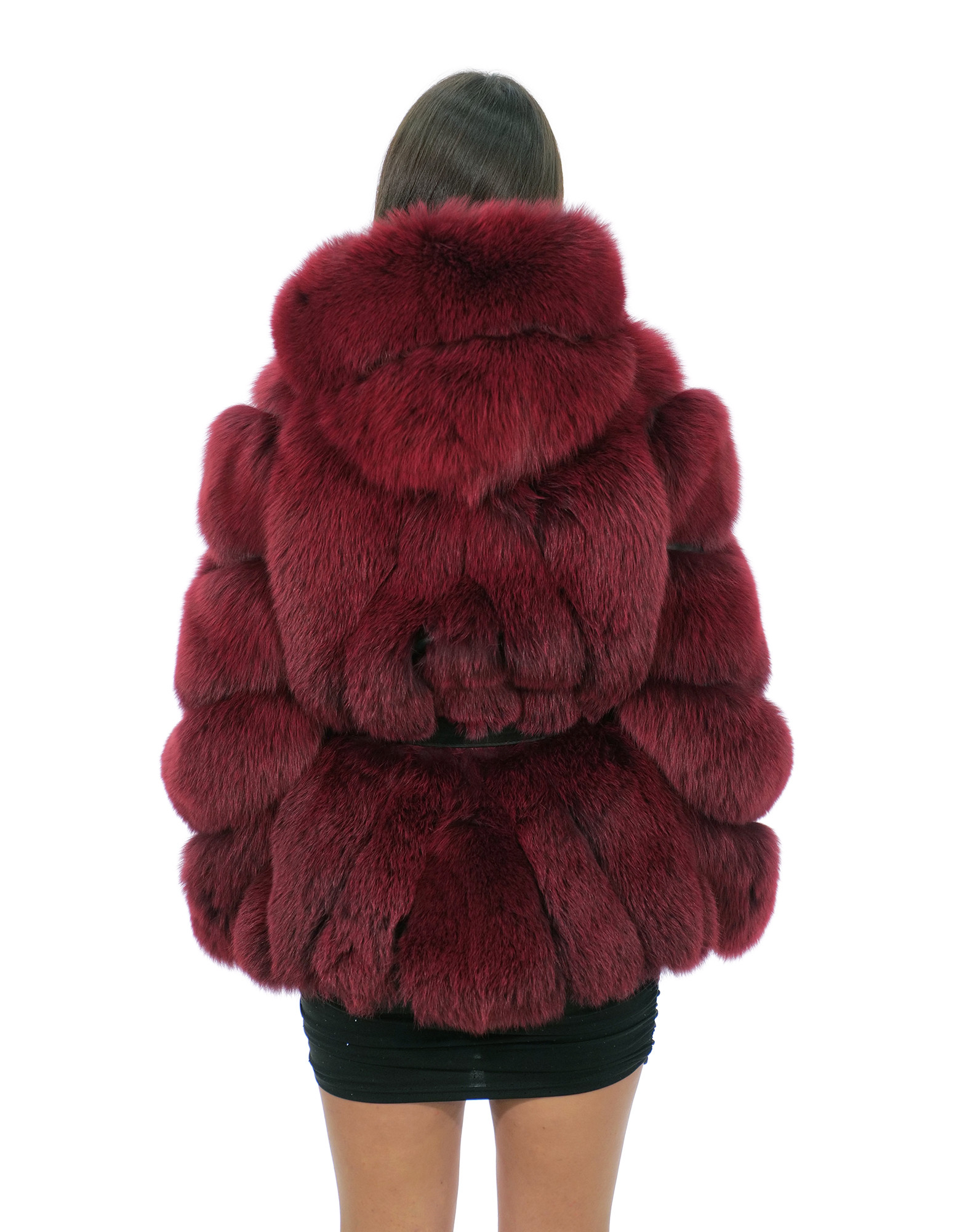 Vollfelljacke 44 aus rotem Fuchspelz mit langärmeligem Leder und Kapuze