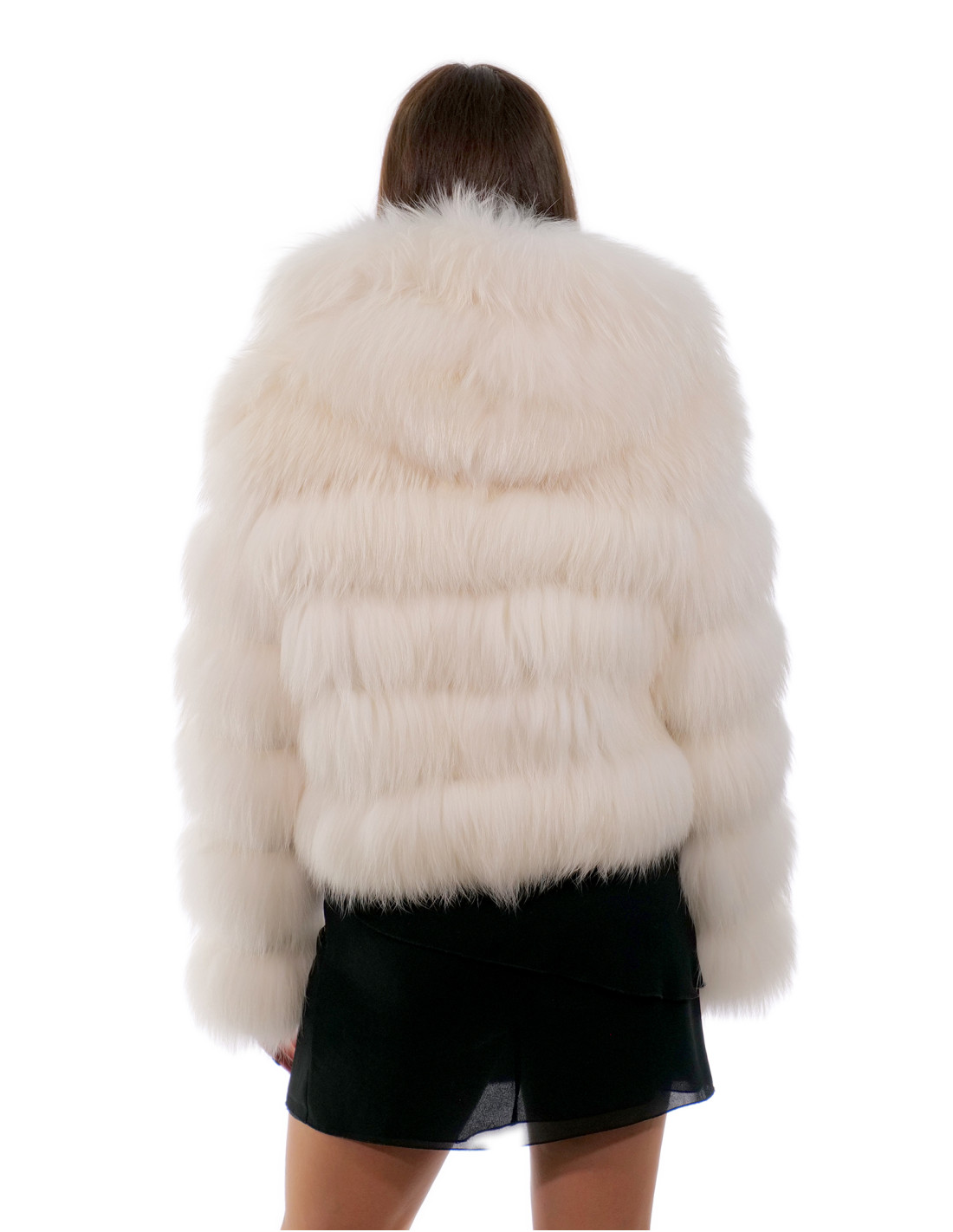 Fuchspelzjacke mit ganzen Fellen in horizontaler Verarbeitung. Unsere Fuchspelze sind Produktionen, die in unseren Labors hergestellt werden, daher eine einzigartige und exklusive Fuchsjacke. Die Möglichkeit, unsere Pelze in höchster Qualität herzustellen, ermöglicht es uns, Angebote zu unterschiedlichen Preisen zu unterbreiten, wobei immer verschiedene Möglichkeiten zu niedrigen Preisen verfügbar sind. Darüber hinaus garantieren unsere Labore und unsere Kooperationen Fuchspelz von unbestrittener Qualität, 100 % hergestellt in Italien. Bei der hierfür verwendeten Fuchspelzqualität handelt es sich um eine Fuchspelzjacke mit Fellen der Marke Saga Furs. Die Fuchspelzjacke ist in horizontaler Verarbeitung mit Einsätzen aus echtem Leder, mit Außentaschen, mit Reißverschluss, luftiger Fuchskapuze sowohl innen als auch außen, langen Ärmeln und außenliegendem Kordelzug unten erhältlich, alles in optischer weißer Farbe.