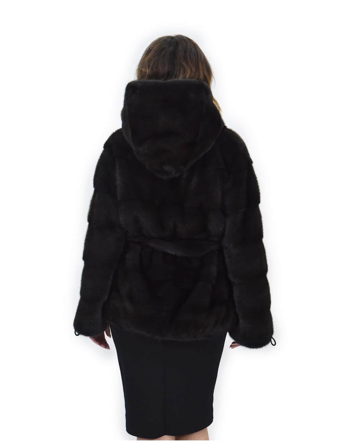 Aurora Kapuze 50 Mantel Fell horizontaler Nerz Kordelzug Boden und Handgelenke