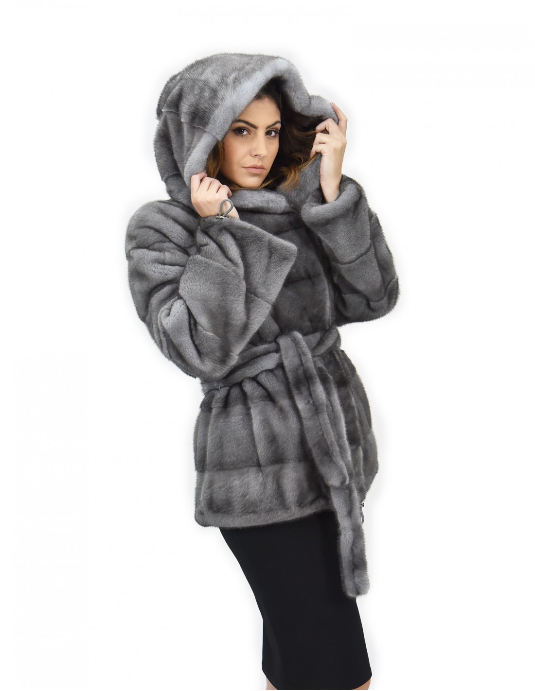 Nerzmantel mit ganzen Fellen in der horizontalen Verarbeitungsmarke Manakas Frankfurt. Unsere Nerzpelze werden zu Produktionen unserer Werkstätten gemacht, also ein einzigartiger und exklusiver Nerzmantel. Die Fähigkeit, unsere Pelze von höchster Qualität zu produzieren, ermöglicht es uns, Vorschläge zu verschiedenen Preisen mit verschiedenen Gelegenheiten zu niedrigen Preisen immer verfügbar zu machen. Darüber hinaus garantieren unsere Labore und unsere Kooperationen ein Nerz von unbestrittener Qualität 100% made in italy. Die Qualität des Nerzes, das dafür verwendet wird, ist mit Fellen signiert Kopenhagen Pelz. Die irisblaue Nerz-Pelzjacke kommt in einem 72 Zentimeter langen Mantelmodell, einer schönen Kapuze gefüttert in Nerzhäuten, Pelzgürtel, langen Ärmeln mit Coulisse an den Handgelenken, um die Passform sowie eine Coulisse auf der boden, in Nerz Fell ganze Häute horizontale Verarbeitung, schließen Haken und normale Außentaschen.