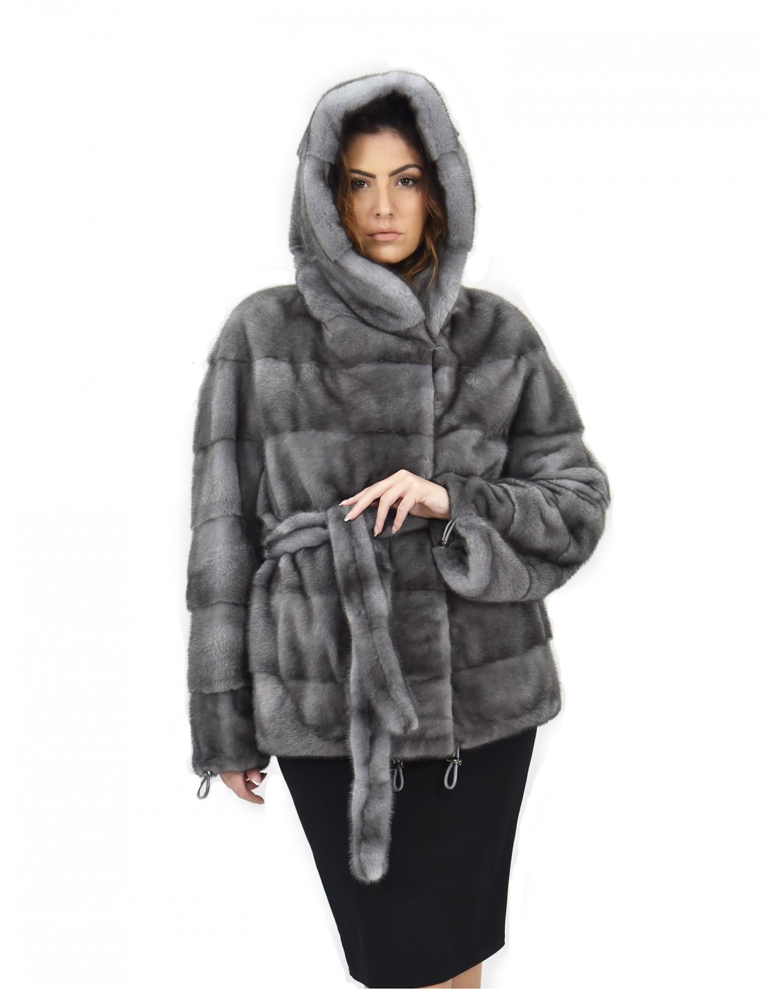 Nerzmantel mit ganzen Fellen in der horizontalen Verarbeitungsmarke Manakas Frankfurt. Unsere Nerzpelze werden zu Produktionen unserer Werkstätten gemacht, also ein einzigartiger und exklusiver Nerzmantel. Die Fähigkeit, unsere Pelze von höchster Qualität zu produzieren, ermöglicht es uns, Vorschläge zu verschiedenen Preisen mit verschiedenen Gelegenheiten zu niedrigen Preisen immer verfügbar zu machen. Darüber hinaus garantieren unsere Labore und unsere Kooperationen ein Nerz von unbestrittener Qualität 100% made in italy. Die Qualität des Nerzes, das dafür verwendet wird, ist mit Fellen signiert Kopenhagen Pelz. Die irisblaue Nerz-Pelzjacke kommt in einem 72 Zentimeter langen Mantelmodell, einer schönen Kapuze gefüttert in Nerzhäuten, Pelzgürtel, langen Ärmeln mit Coulisse an den Handgelenken, um die Passform sowie eine Coulisse auf der boden, in Nerz Fell ganze Häute horizontale Verarbeitung, schließen Haken und normale Außentaschen.