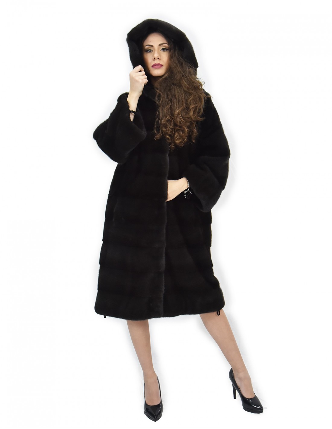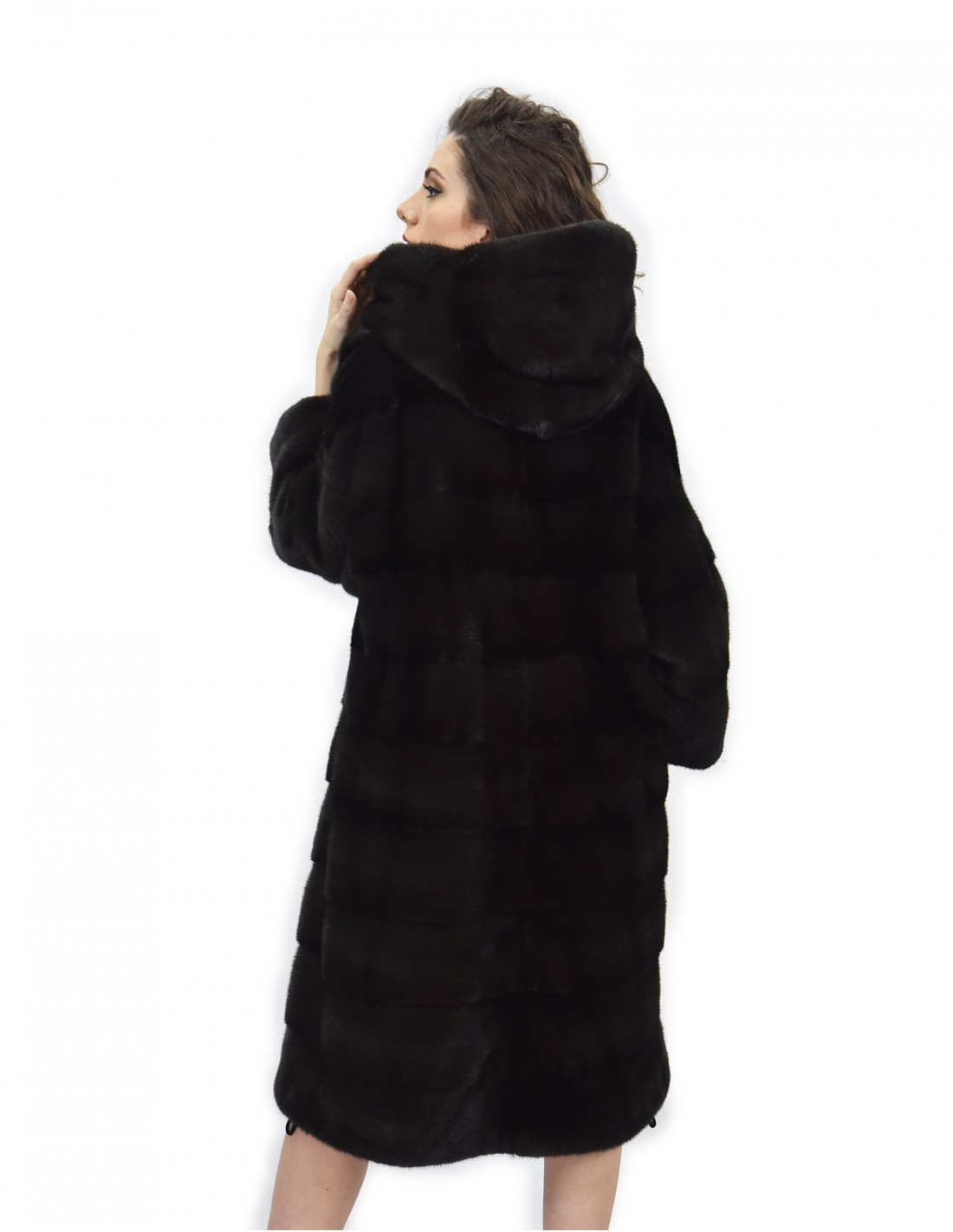 Fell 104cm Pelzkappe 52 horizontaler Nerz Aurora Kordelzug