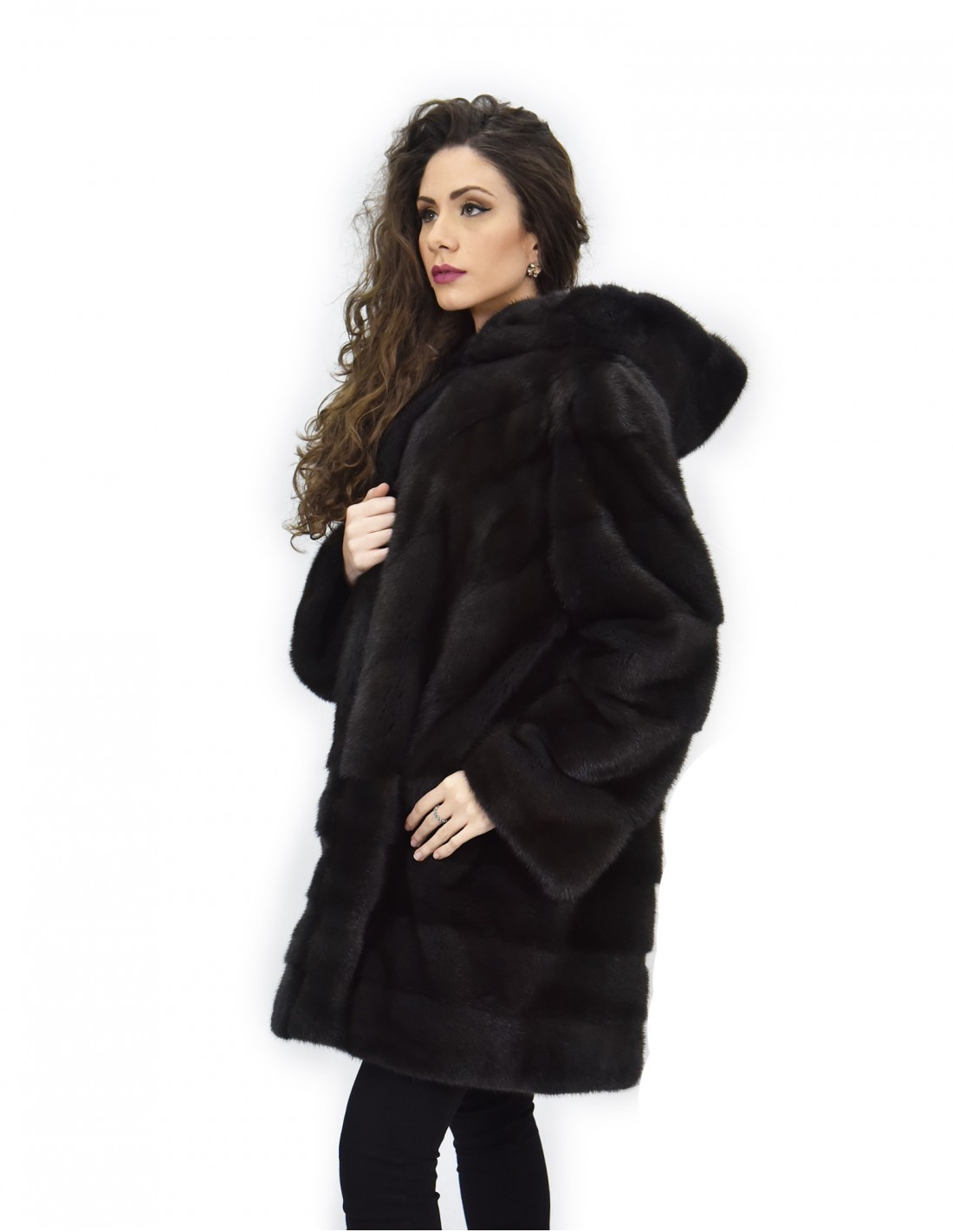 Fell aurora 52 horizontaler Nerz und querfellkapuze 88 cm