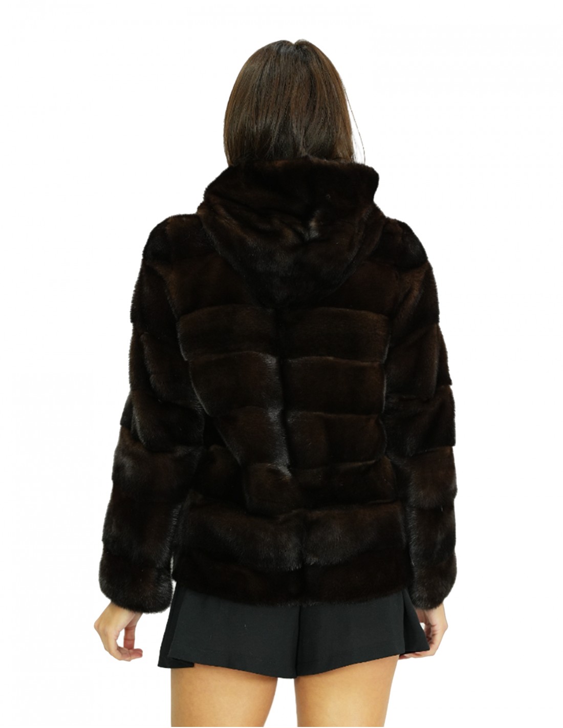 Horizontale Vollfell-Nerzjacke in Mahagonifarbe mit pelzgefütterter Kapuze. Unsere Nerzpelze sind Produktionen, die in unseren Labors hergestellt werden, daher eine einzigartige und exklusive Nerzjacke. Die Möglichkeit, unsere Pelze in höchster Qualität herzustellen, ermöglicht es uns, Angebote zu unterschiedlichen Preisen zu unterbreiten, wobei immer verschiedene Möglichkeiten zu niedrigen Preisen verfügbar sind. Darüber hinaus garantieren unsere Labore und unsere Kooperationen einen Nerzpelz von unbestrittener Qualität, der zu 100 % in Italien hergestellt wird. Die Qualität des weiblichen Nerzpelzes, die hierfür verwendet wird, ist eine Nerzpelzjacke mit Fellen, die mit In Moda-Pelzen signiert sind. Die Nerzpelzjacke in horizontaler Verarbeitung, 66 Zentimeter lang, lange Ärmel, Verschluss mit Innenhaken und Kapuze mit Mahagoni-Nerzfellen gefüttert.