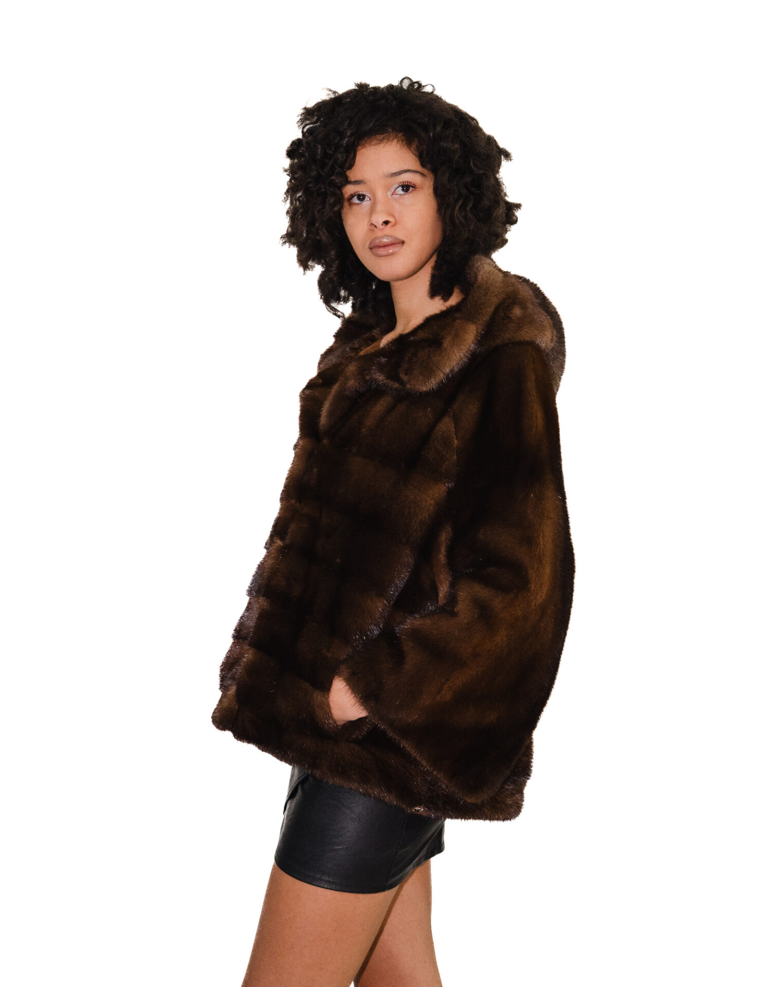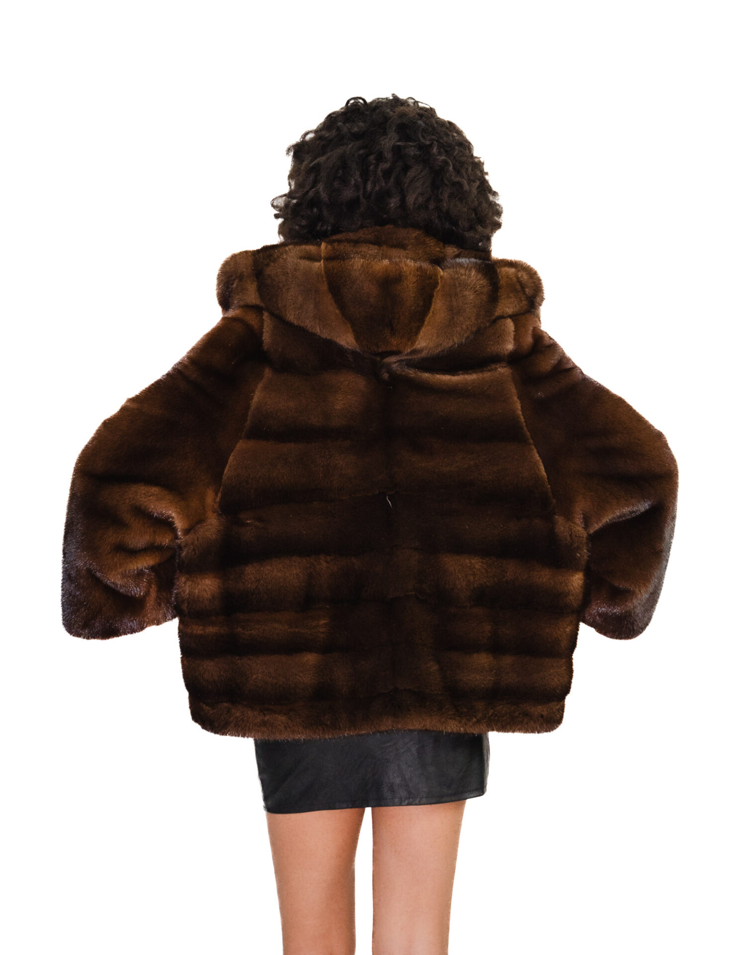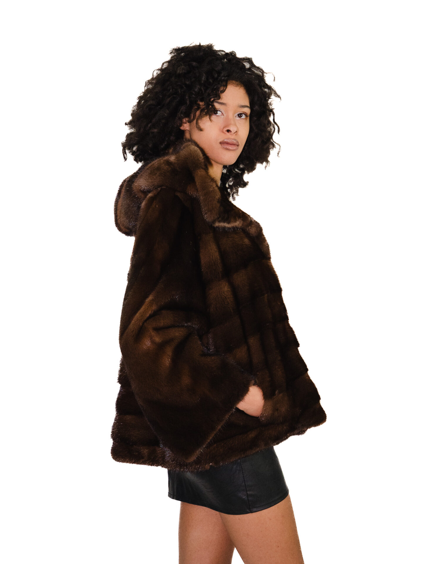 Giacca di visone a pelli intere in lavorazione orizzontale con maniche a pelle intera. Unsere Nerzpelze werden in unseren eigenen Werkstätten hergestellt, so dass eine einzigartige und exklusive Nerzjacke entsteht. Die Möglichkeit, unsere Pelze von höchster Qualität zu produzieren, erlaubt es uns, Angebote zu verschiedenen Preisen zu machen, wobei viele Schnäppchen zu niedrigen Preisen immer verfügbar sind. Außerdem garantieren unsere Werkstätten und Partnerschaften einen Nerzpelz von unbestrittener 100%iger Made in Italy Qualität. Die Qualität des weiblichen Nerzpelzes, der dafür verwendet wurde, ist eine Nerzpelzjacke mit Fellen der Marke Saga Furs. Die Nerzpelzjacke in horizontaler Verarbeitung mit Ärmeln aus Vollleder ist in verschiedenen Größen erhältlich. Sie hat eine glockenförmige Passform mit Kordelzug am Saum und weiten Ärmeln und passt gut von Größe 44 bis 56. Die Jacke ist 64 Zentimeter lang und verfügt über Außentaschen, einen Hakenverschluss und eine Kapuze, die ebenfalls mit Nerzpelz gefüttert ist. Die Farben sind demi.