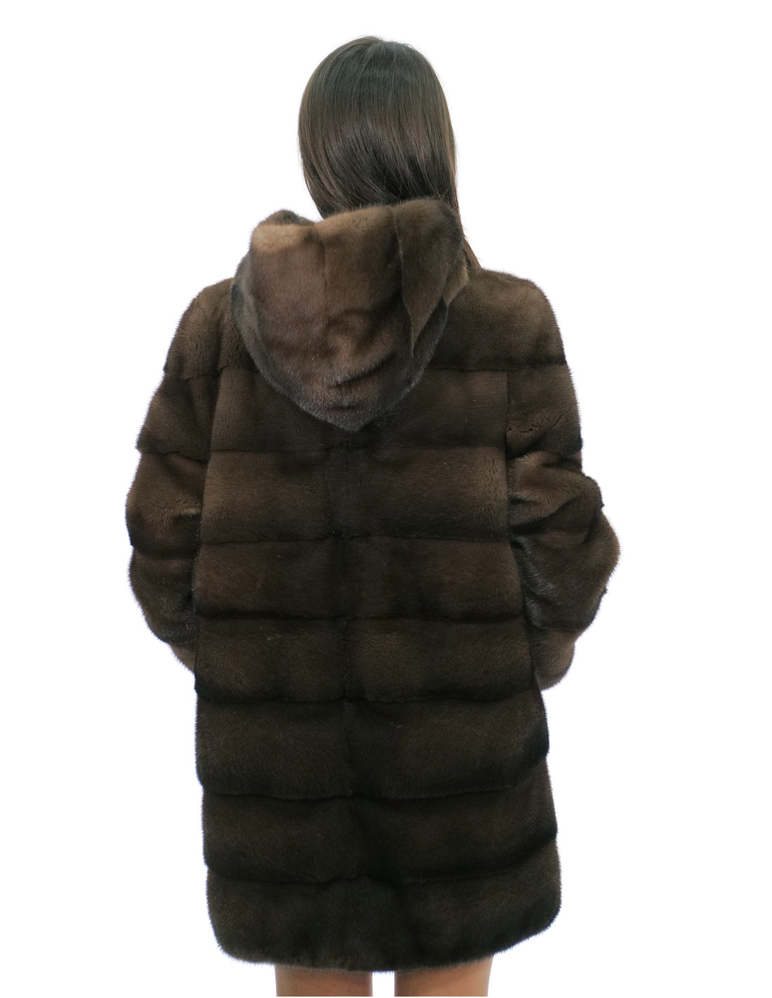 Mantel 82cm Demi Buff 48 Nerzpelz langärmelige Kapuze gefüttert Nerzfelle Kordelzug