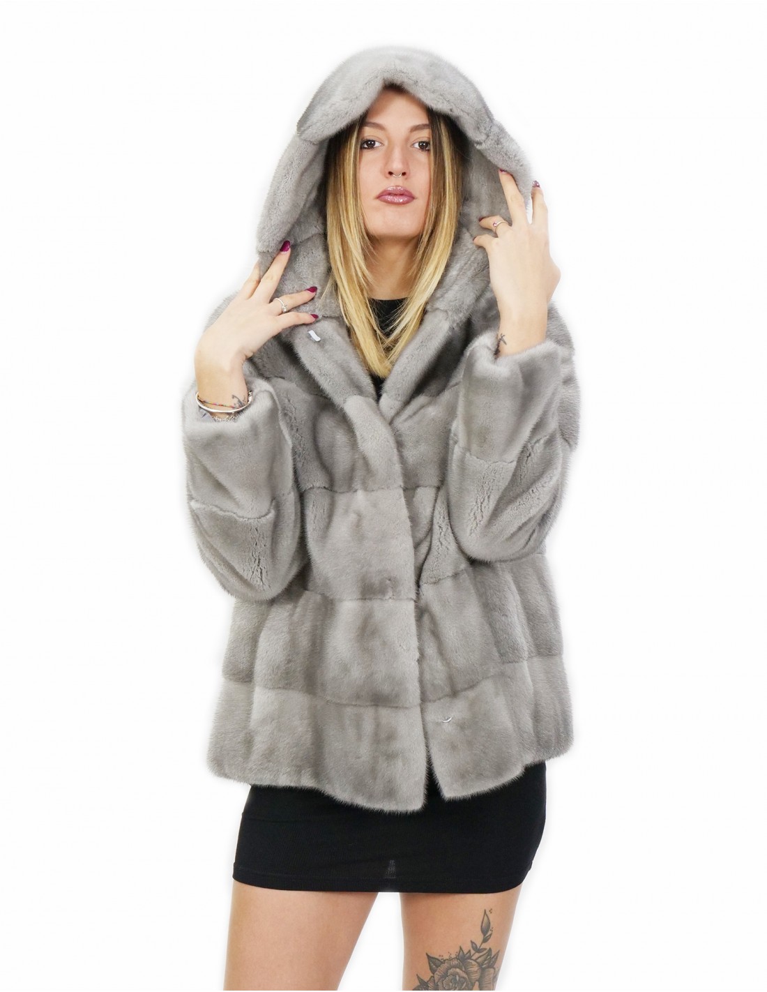 Nerzjacke mit ganzen Fellen in horizontaler Verarbeitung. Unsere Nerzpelze sind in unseren Labors hergestellte Produkte, daher eine einzigartige und exklusive Nerzjacke. Die Möglichkeit, unsere Pelze von höchster Qualität herzustellen, ermöglicht es uns, Vorschläge zu unterschiedlichen Preisen mit verschiedenen Möglichkeiten zu niedrigen Preisen zu machen, die immer verfügbar sind. Darüber hinaus garantieren unsere Labors und unsere Kooperationen ein Nerzfell von unbestrittener Qualität, das zu 100 % in Italien hergestellt wird. Die Qualität des dafür verwendeten weiblichen Nerzes ist eine Nerzjacke mit Fellen, die von InModa Pellicceria signiert sind. Die Nerzpelzjacke ist horizontal gearbeitet, innenliegender Kordelzug auf Taillenhöhe, mit Außentaschen, mit Hakenverschluss, mit Nerzpelz gefütterte Kapuze, lange Ärmel in Saphirfarbe.