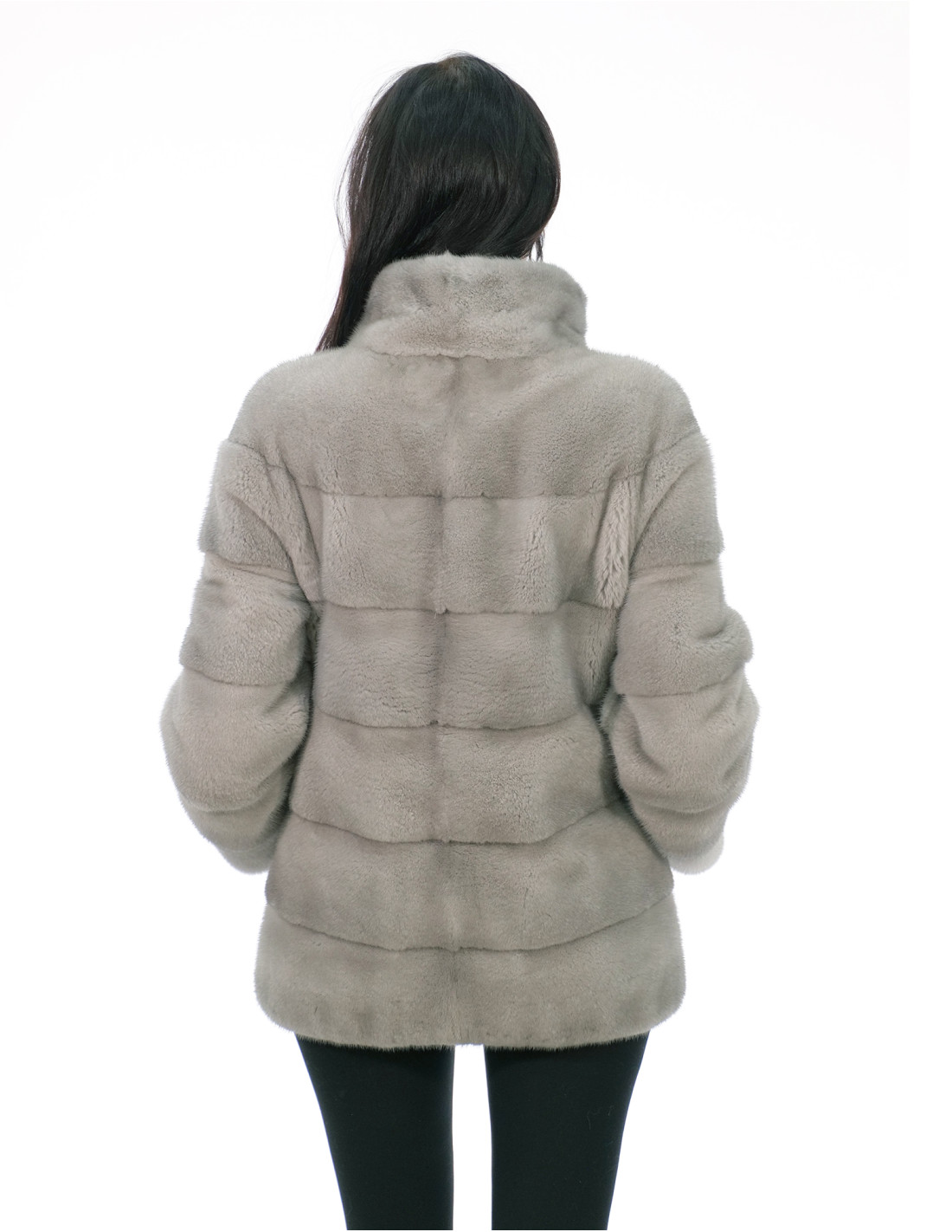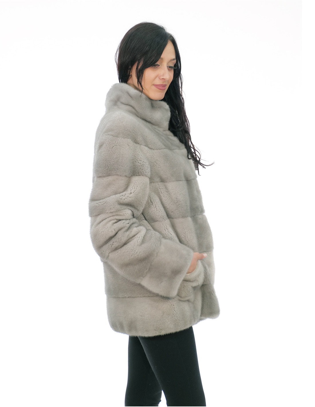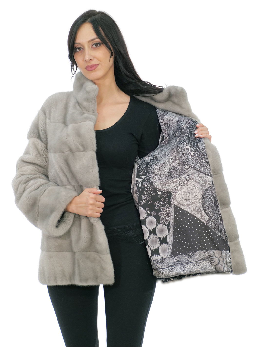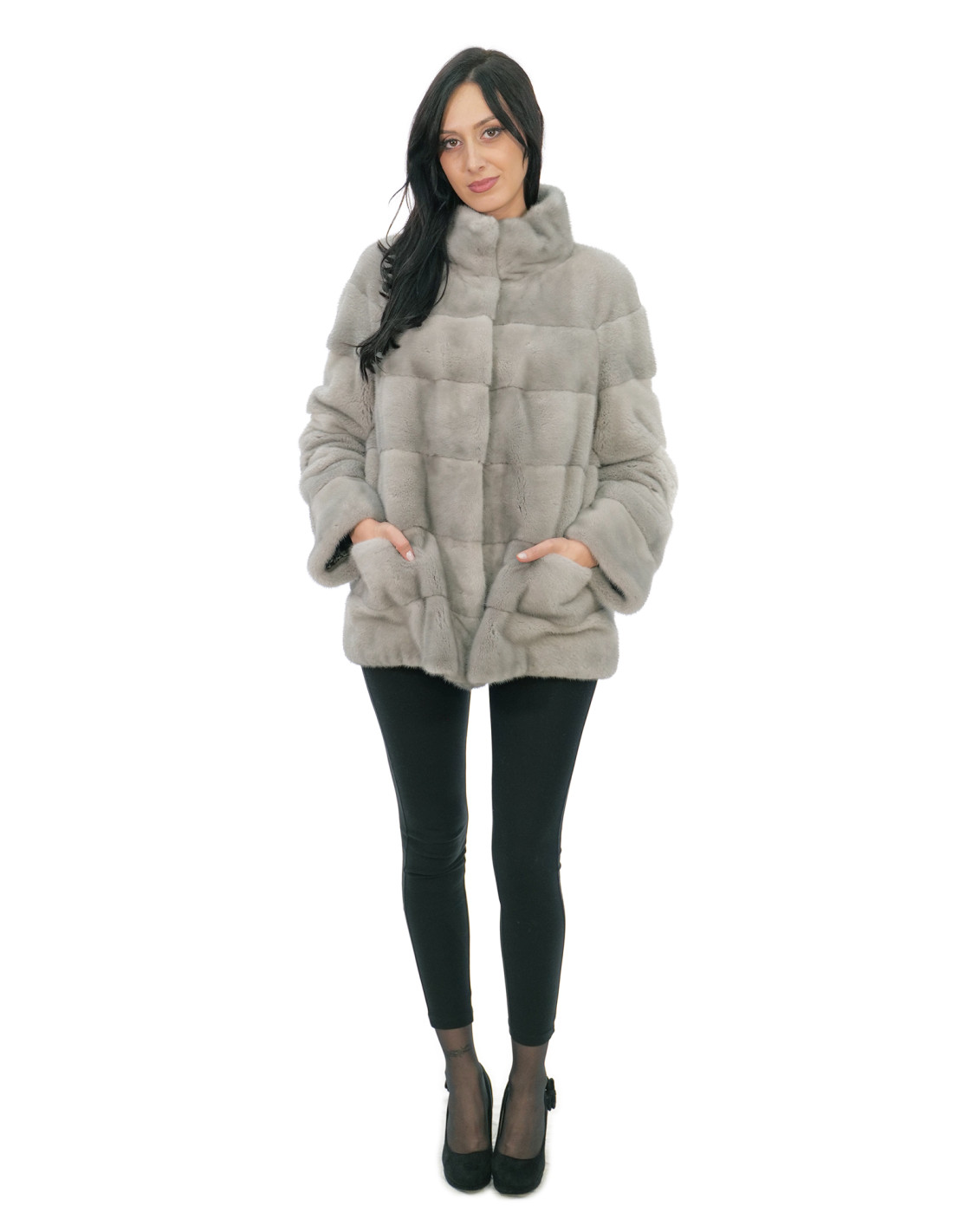 Pistagna Mantel Nerzfell 70cm 50 grau Saphir lange Ärmel Außentaschen und Innentasche