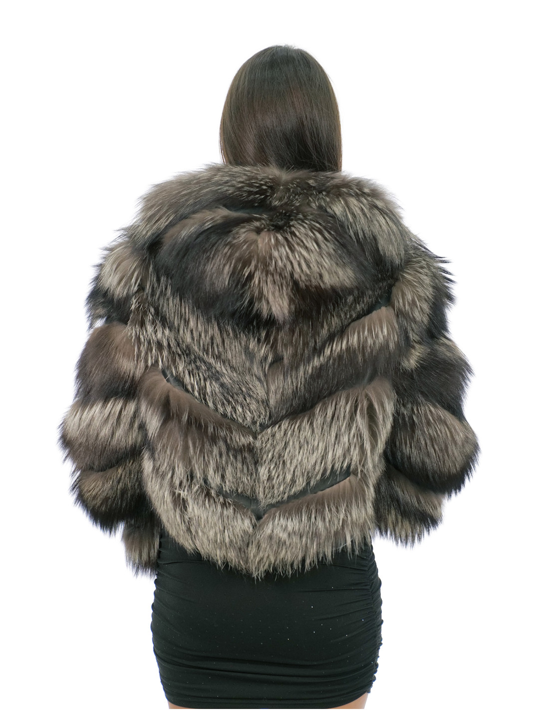Fuchspelzjacke mit ganzen Fellen in horizontaler Verarbeitung. Unsere Fuchspelze sind Produkte aus unseren Laboren und daher einzigartige und exklusive Fuchsjacken. Die Fähigkeit, unsere Pelze in höchster Qualität herzustellen, ermöglicht es uns, Angebote zu unterschiedlichen Preisen zu unterbreiten, wobei für verschiedene Anlässe stets günstige Preise verfügbar sind. Darüber hinaus garantieren unsere Labore und unsere Zusammenarbeit einen Fuchspelz von unbestrittener Qualität, 100 % Made in Italy. Die hierfür verwendete Fuchspelzqualität ist eine Fuchspelzjacke mit Fellen der Marke InModa Pellicceria. Die Fuchspelzjacke hat ein horizontales Design mit Einsätzen aus echtem Leder, Außentaschen, Reißverschluss, eine flauschige Fuchskapuze, die innen mit schwarzem Pelz gefüttert ist, lange Ärmel, alles in Silber auf Schwarz und Grau.