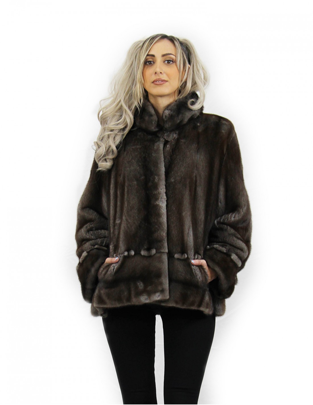 Blulight 48 mink Pelzjacke vollärmelig langärmeliger Pistagna Kragenknopf um den Hals