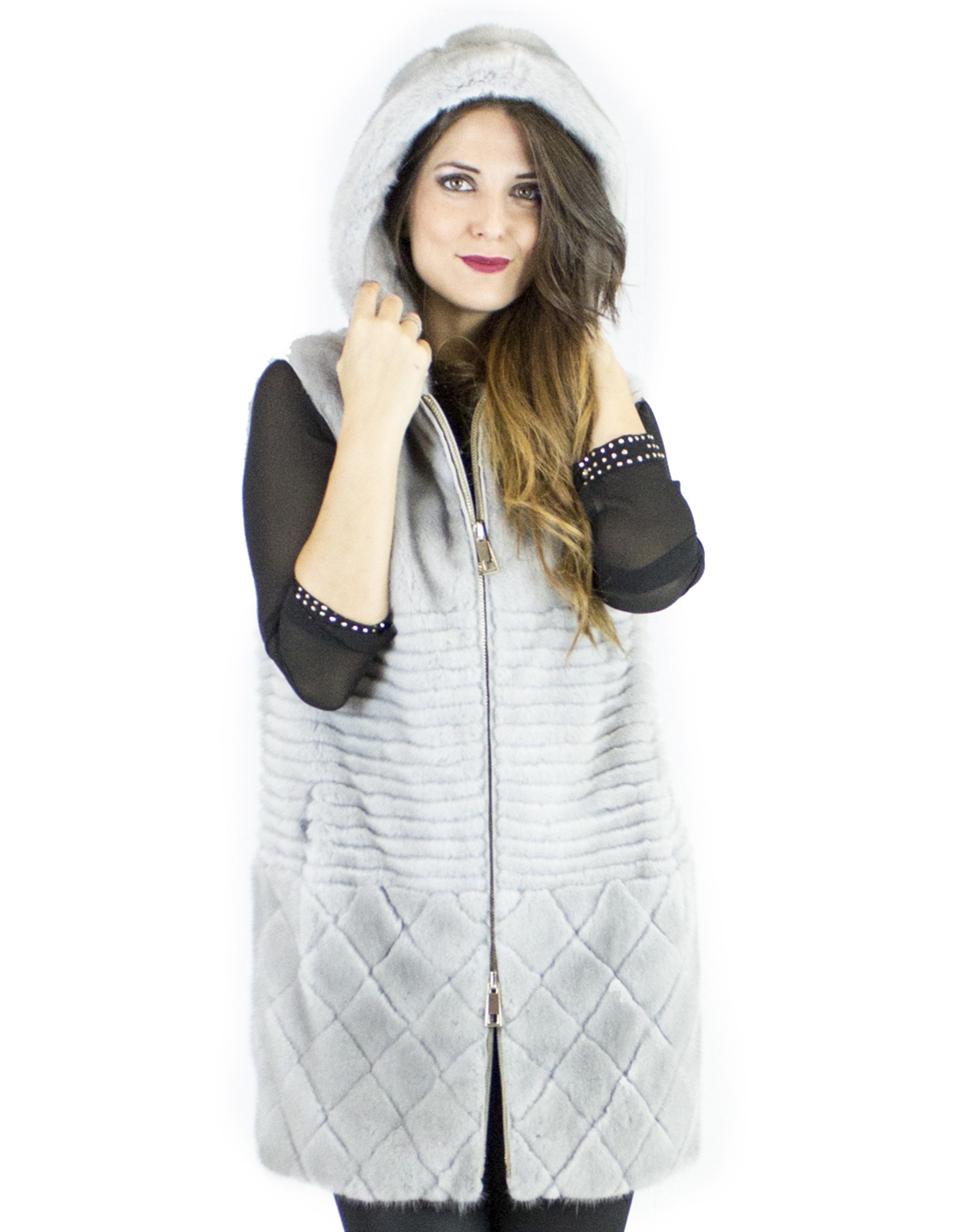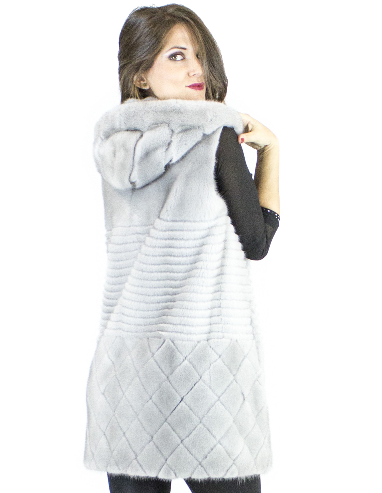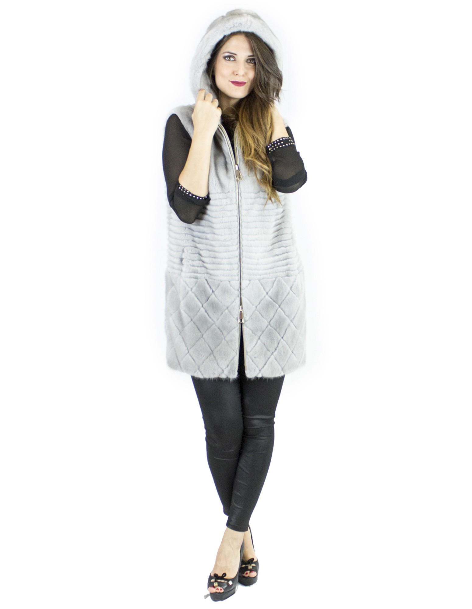 Vest Saphir Nerzpelzes Haube 42-44 fur mink норка pelliccia visone fourrure vison