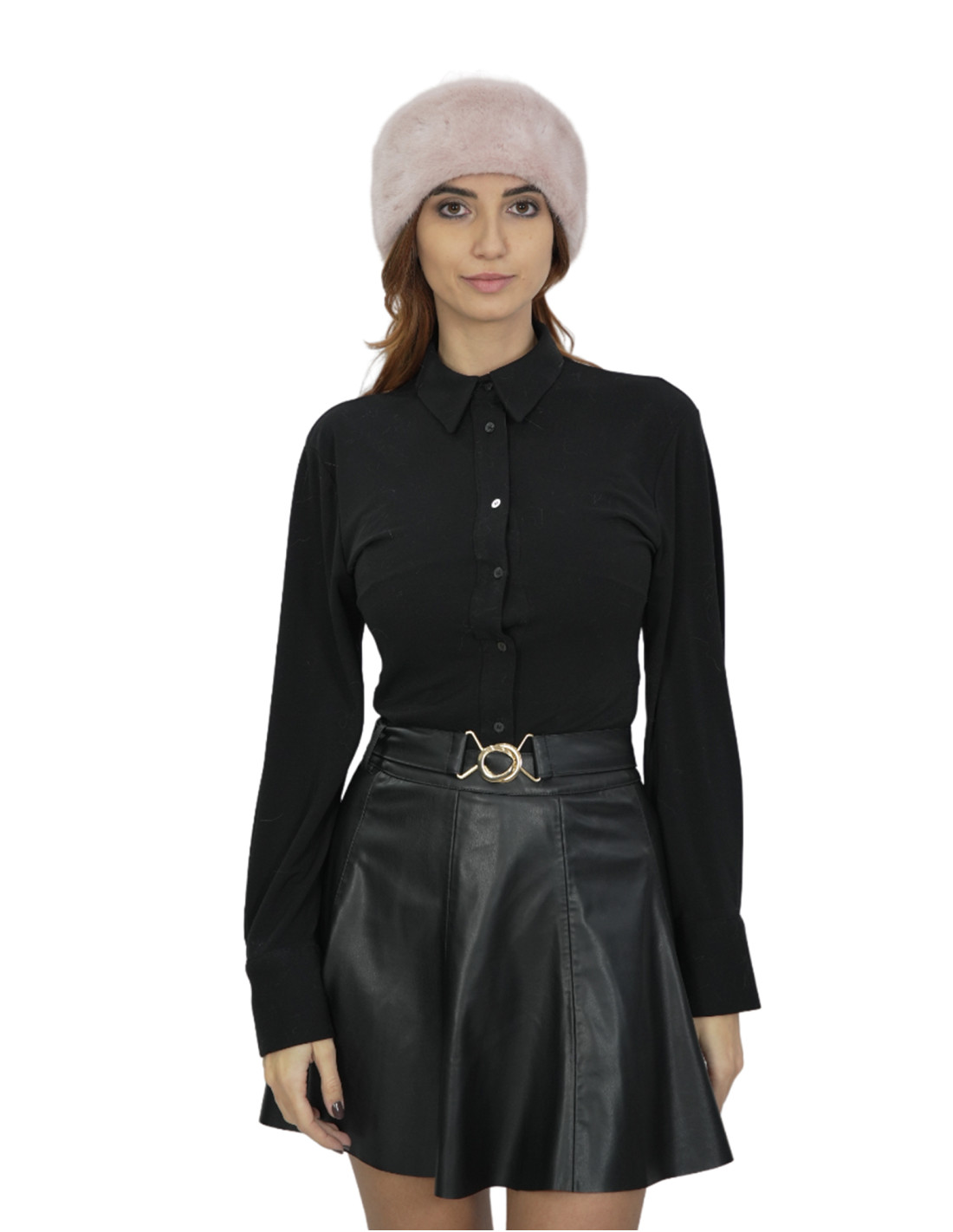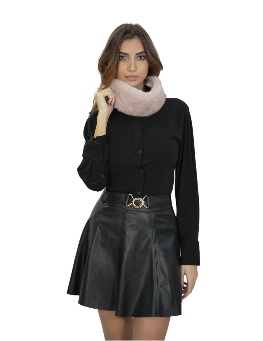 Rosa Nerzfell-Stirnband mit Ohrenschützern oder Halswärmer mit Gummizug