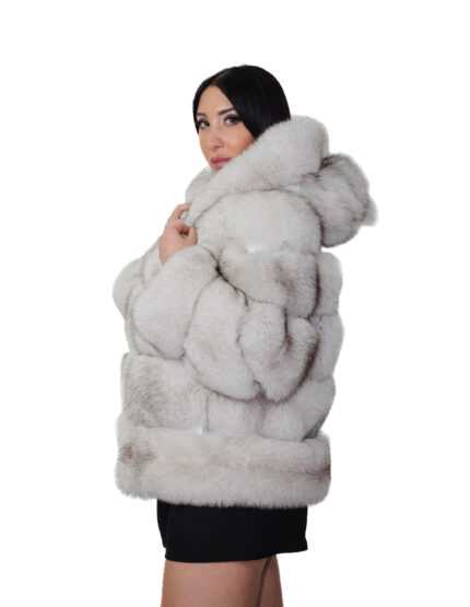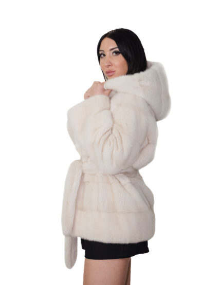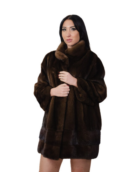 Long flared fur coat 78 cm demi hood 56 mink horizontal V saga furs
