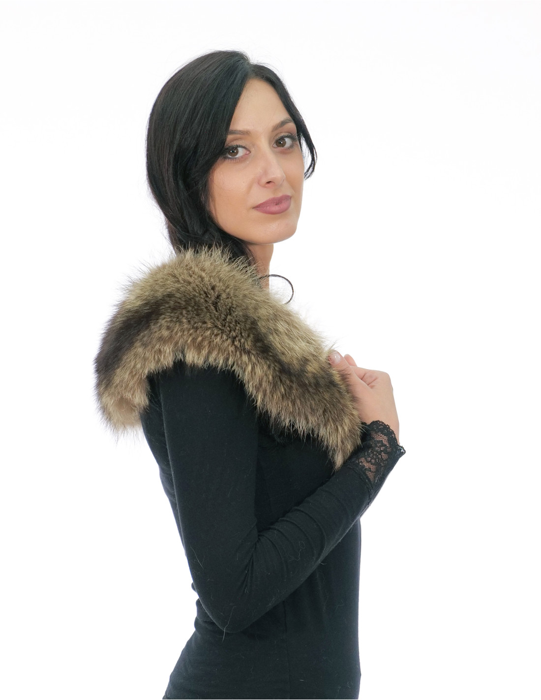 Brown gradient natural fox fur collar with pointed shape and brown lining