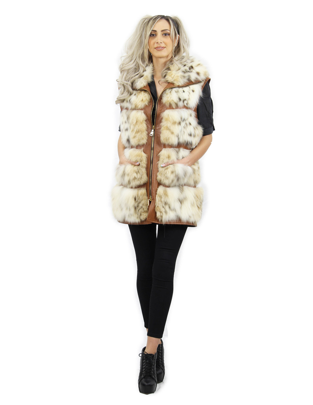 Fox fur vest with whole skins. Our fox furs are products made in our laboratories, therefore a unique and exclusive fox jacket. The possibility of producing our furs of the highest quality allows us to make proposals at different prices with various occasions at low prices always available. Furthermore, our laboratories and our collaborations guarantee a fox fur of undisputed quality 100% made in Italy. The quality of fox fur used for this is a fox fur vest with skins signed InModa Pellicceria. The fox fur vest comes with external pockets with magnetic closure, zip closure and Italian collar decorated with fox fur in spotted beige color.