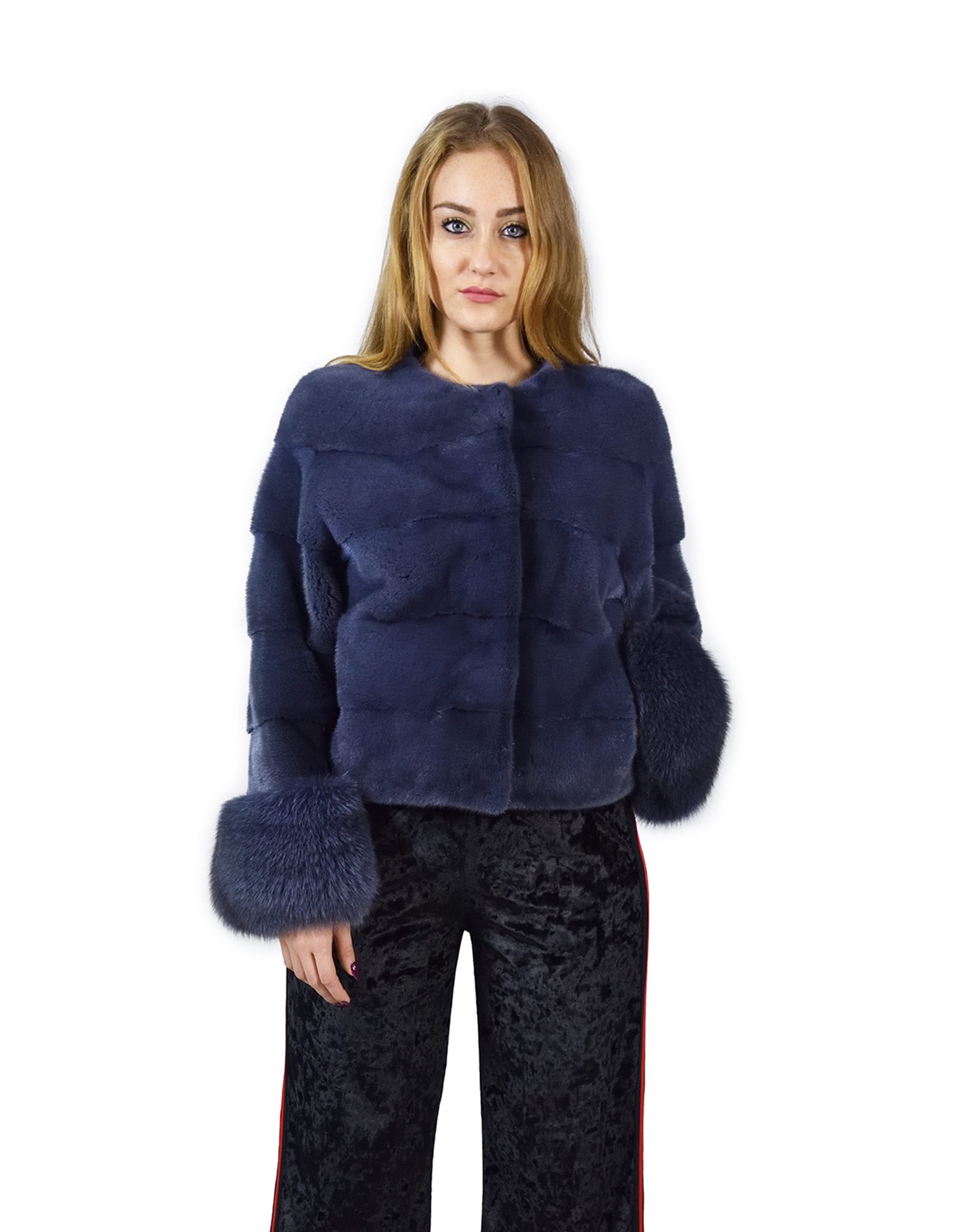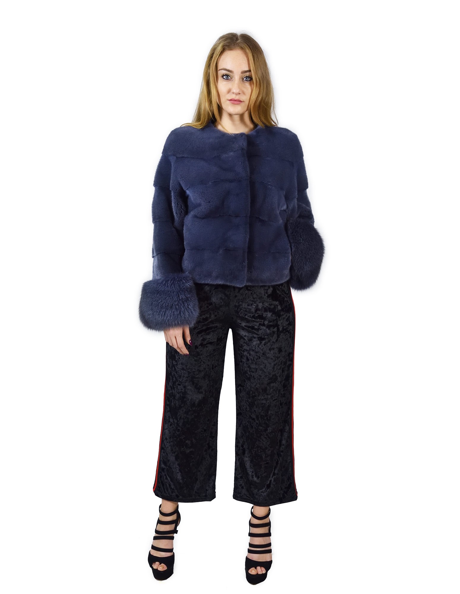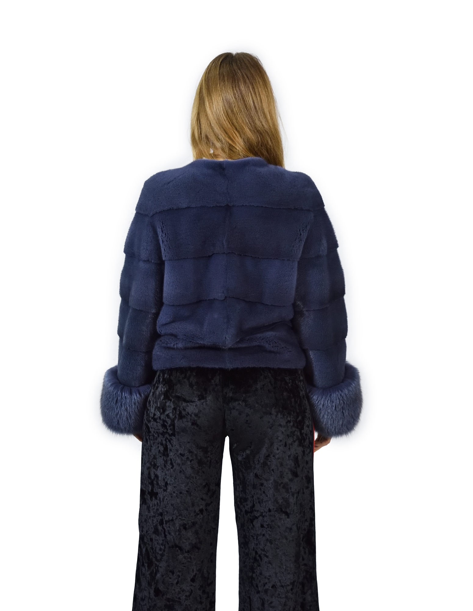 44 horizontal mink jacket blue jeans with fox wrists fourrure de vison pelliccia visone Nerz