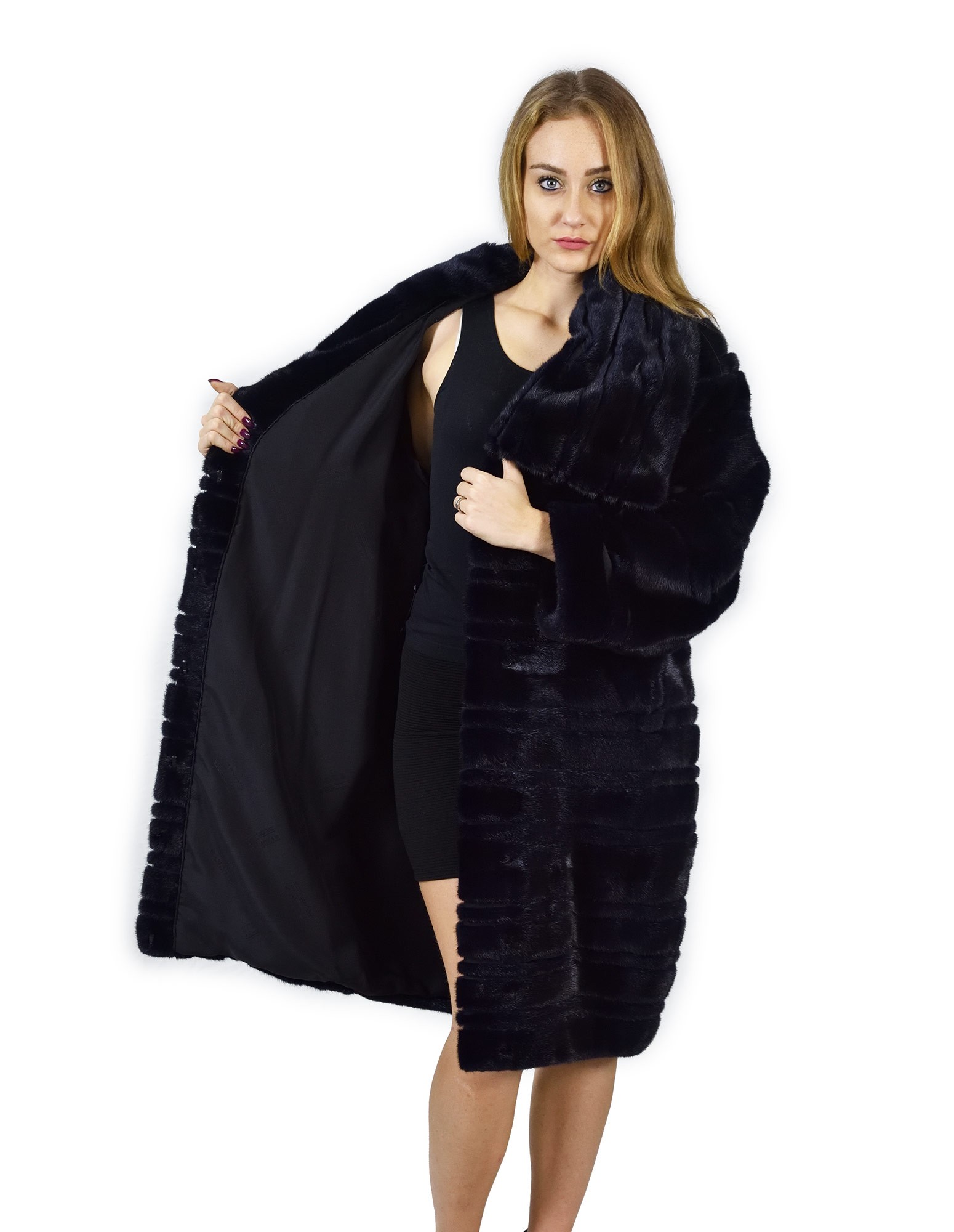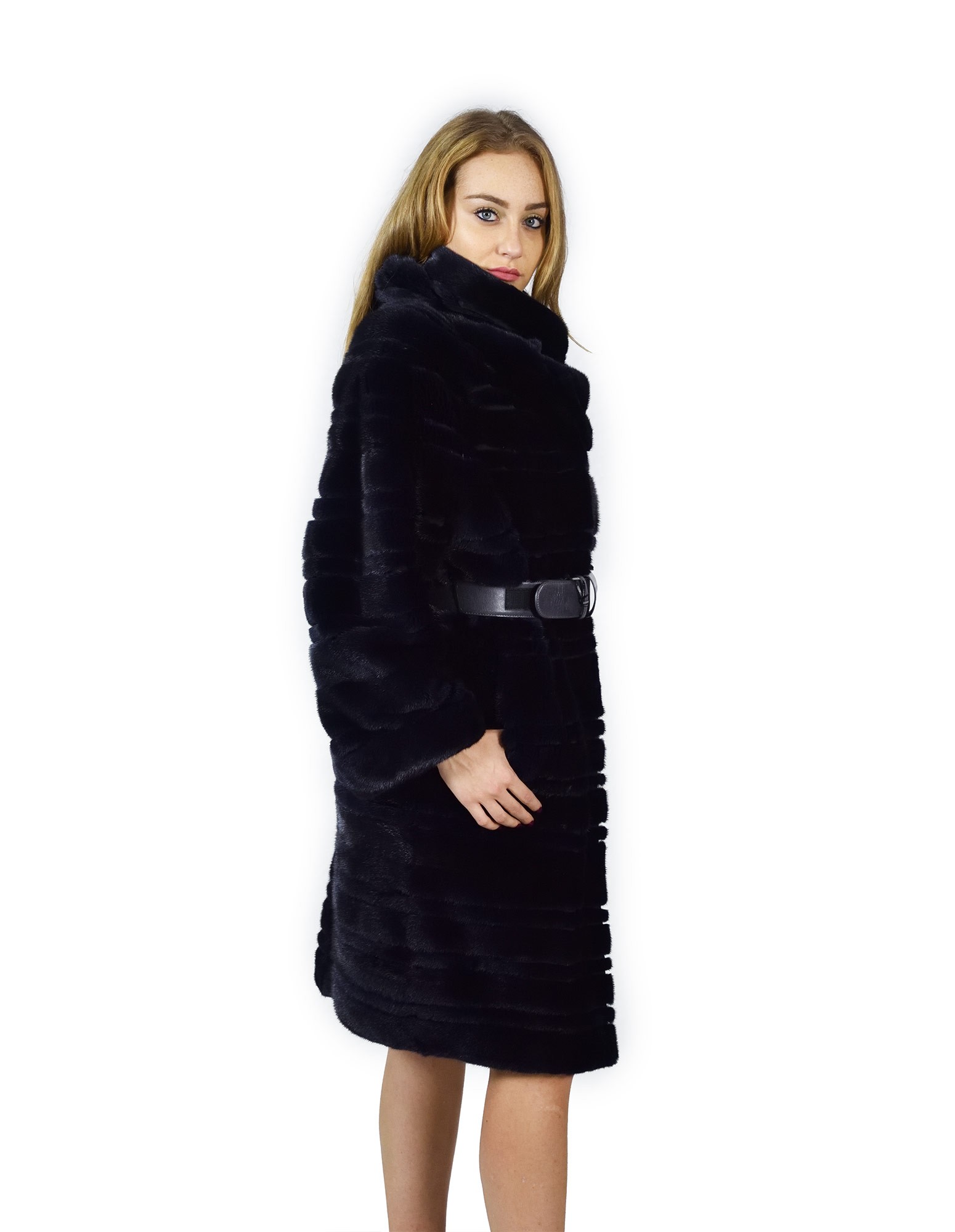 Home » Shop » 48 Horizontal mink coat blue neck hood rigid skin pelz nerz pelliccia visone норка fourrure vison
