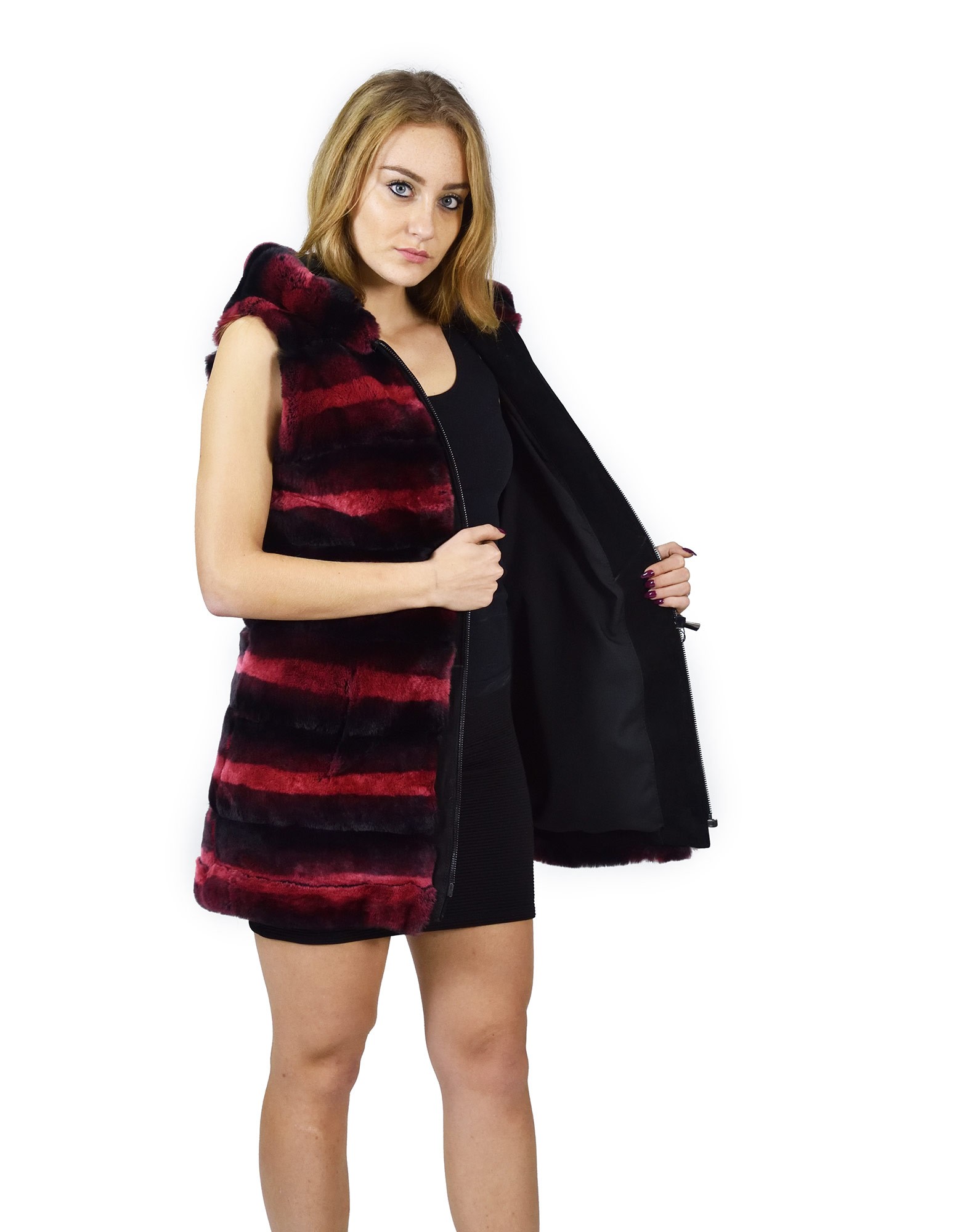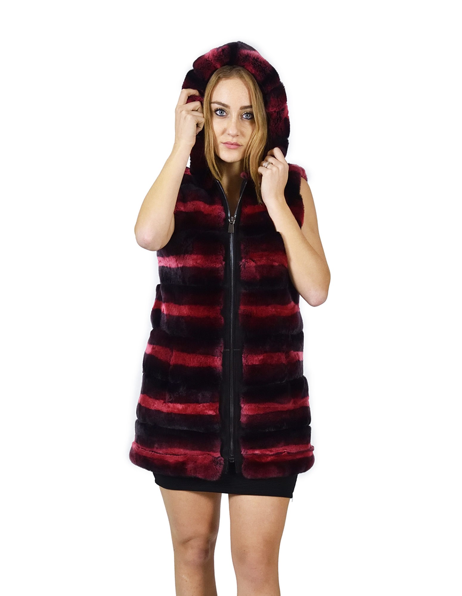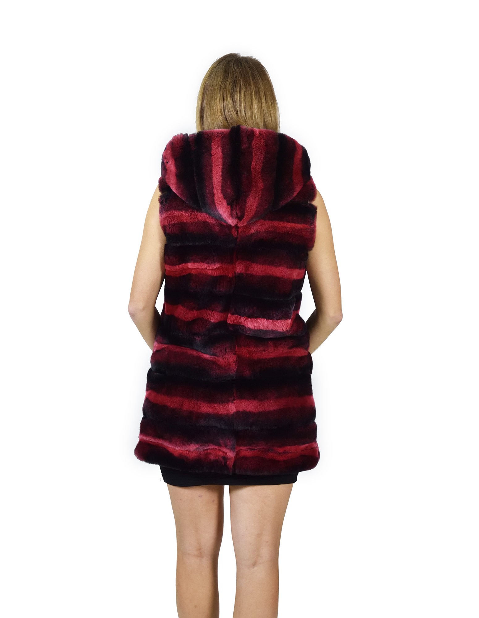 44 Fur Rex fuchsia gradient sleeveless hooded pelliccia rex pelz мех рекс fourrure