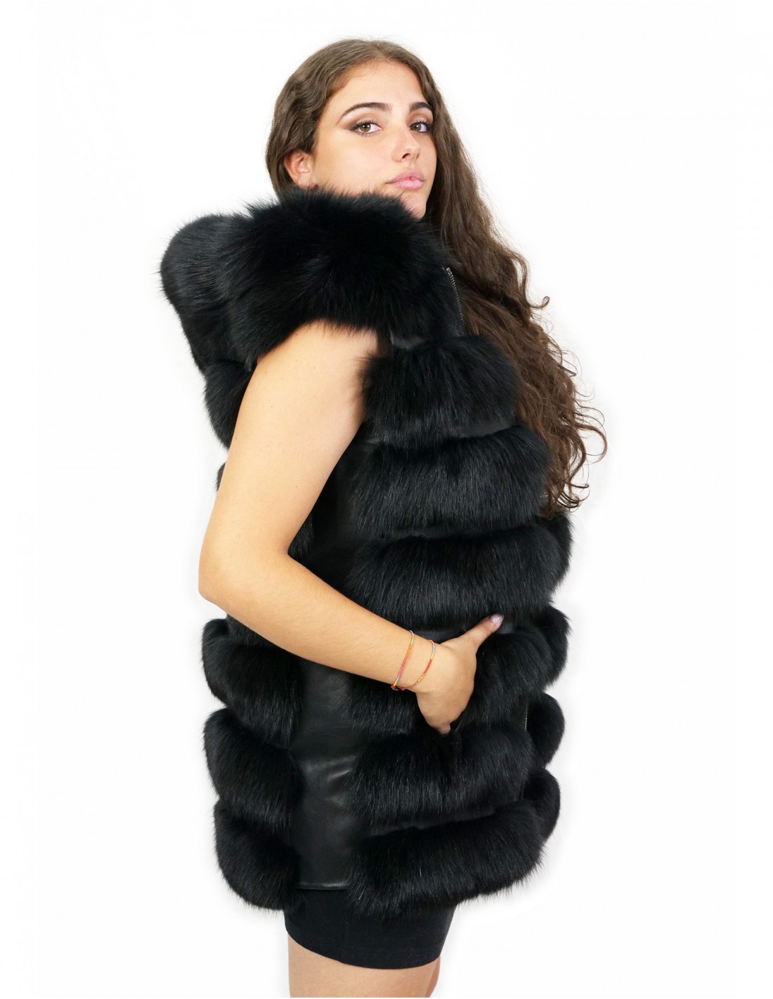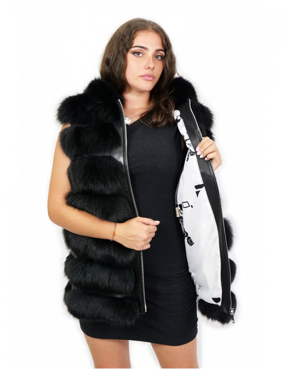 Fox fur vest with whole skins. Our fox furs are productions made in our workshops, therefore a unique and exclusive fox jacket. The possibility of producing our furs of the highest quality allows us to make proposals at different prices with various occasions at low prices always available. Furthermore, our laboratories and our collaborations guarantee a fox fur of undisputed quality 100% made in Italy. The quality of fox fur used for this is a fox fur vest with InModa Pellicceria branded skins. The vest in fox fur and insertion of real black leather comes with external pockets, zip closure and hood lined in leather and external fur and in black, also on the sides it has a leather band designed not to give volume to the hips.
