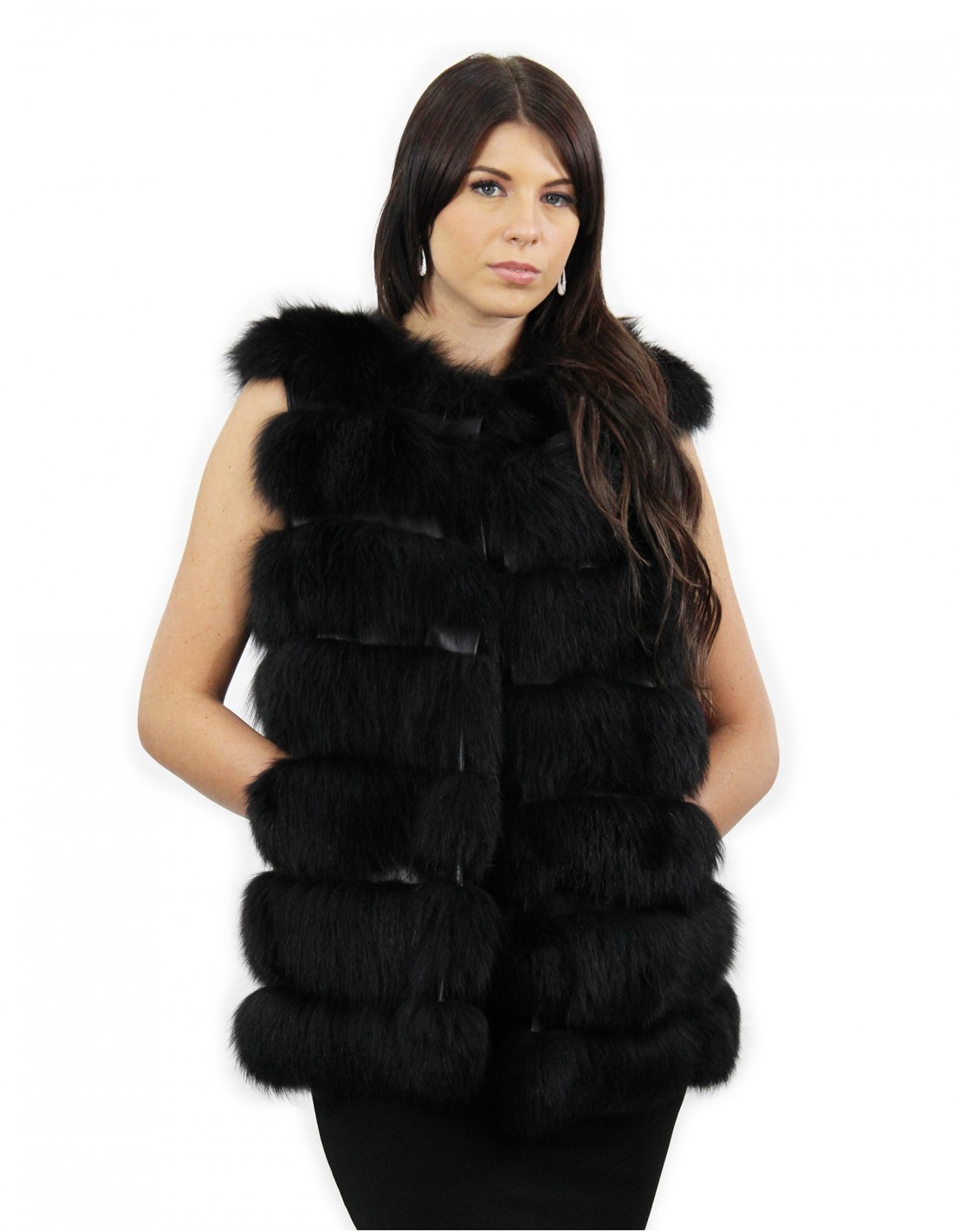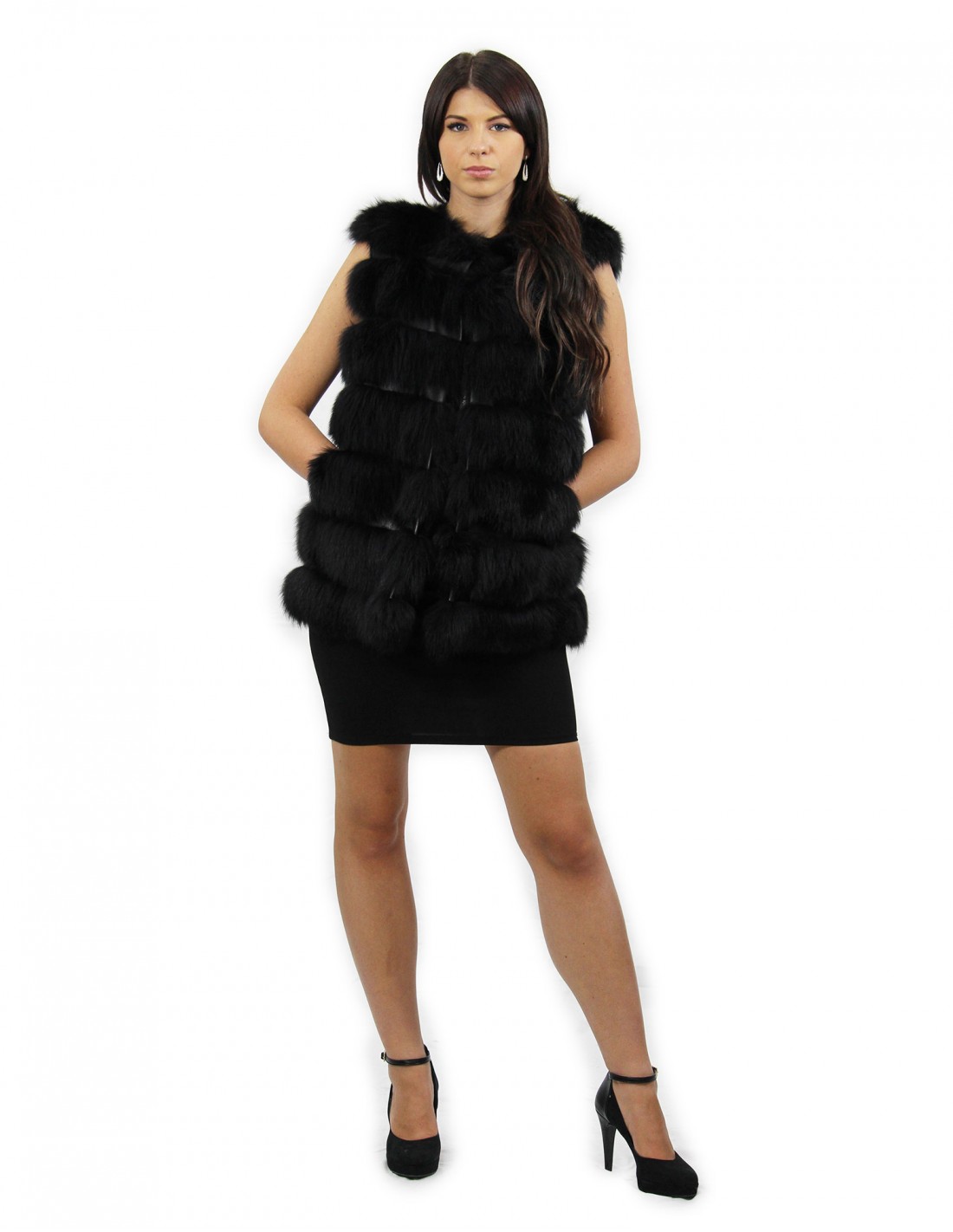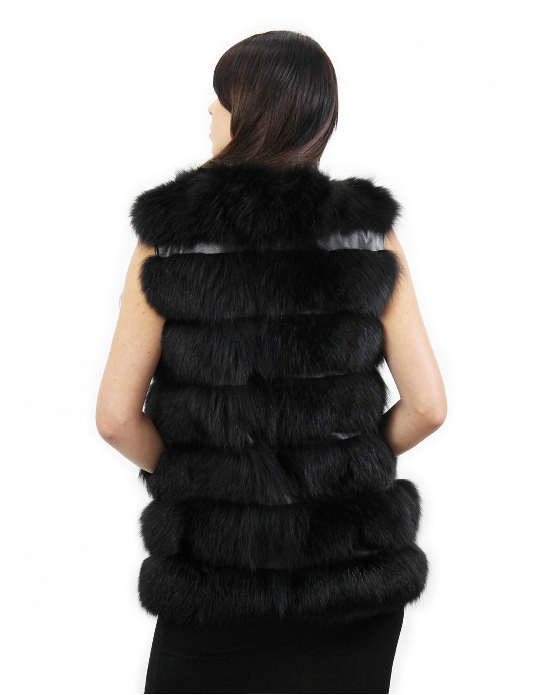Fox fur vest with whole skins. Our fox furs are productions made in our workshops, therefore a unique and exclusive fox jacket. The possibility of producing our furs of the highest quality allows us to make proposals at different prices with various occasions at low prices that are always available. Furthermore, our laboratories and our collaborations guarantee a fox fur of undisputed quality 100% made in Italy. The quality of fox fur used for this is a fox fur vest with InModa Pellicceria branded skins. The fox fur vest comes with carrying in genuine shiny black leather, external pockets, hook closure and fox fur Chanel collar in black.
