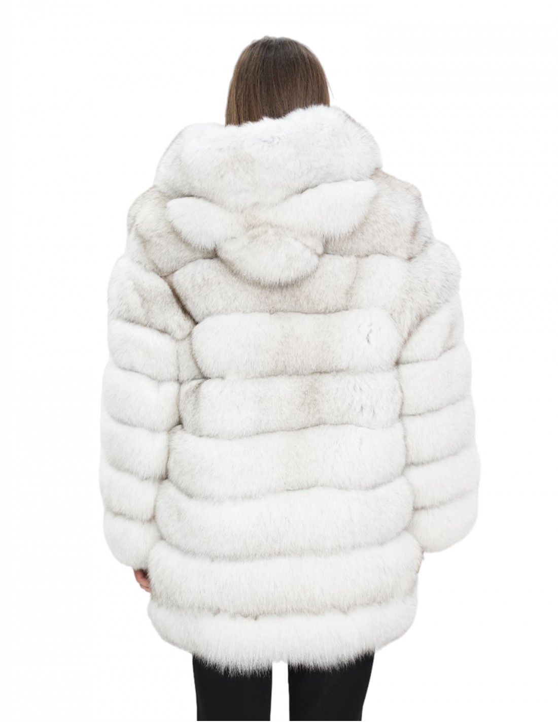 Long jacket with sleeves white 44 horizontal fox fur with leather and zip hood