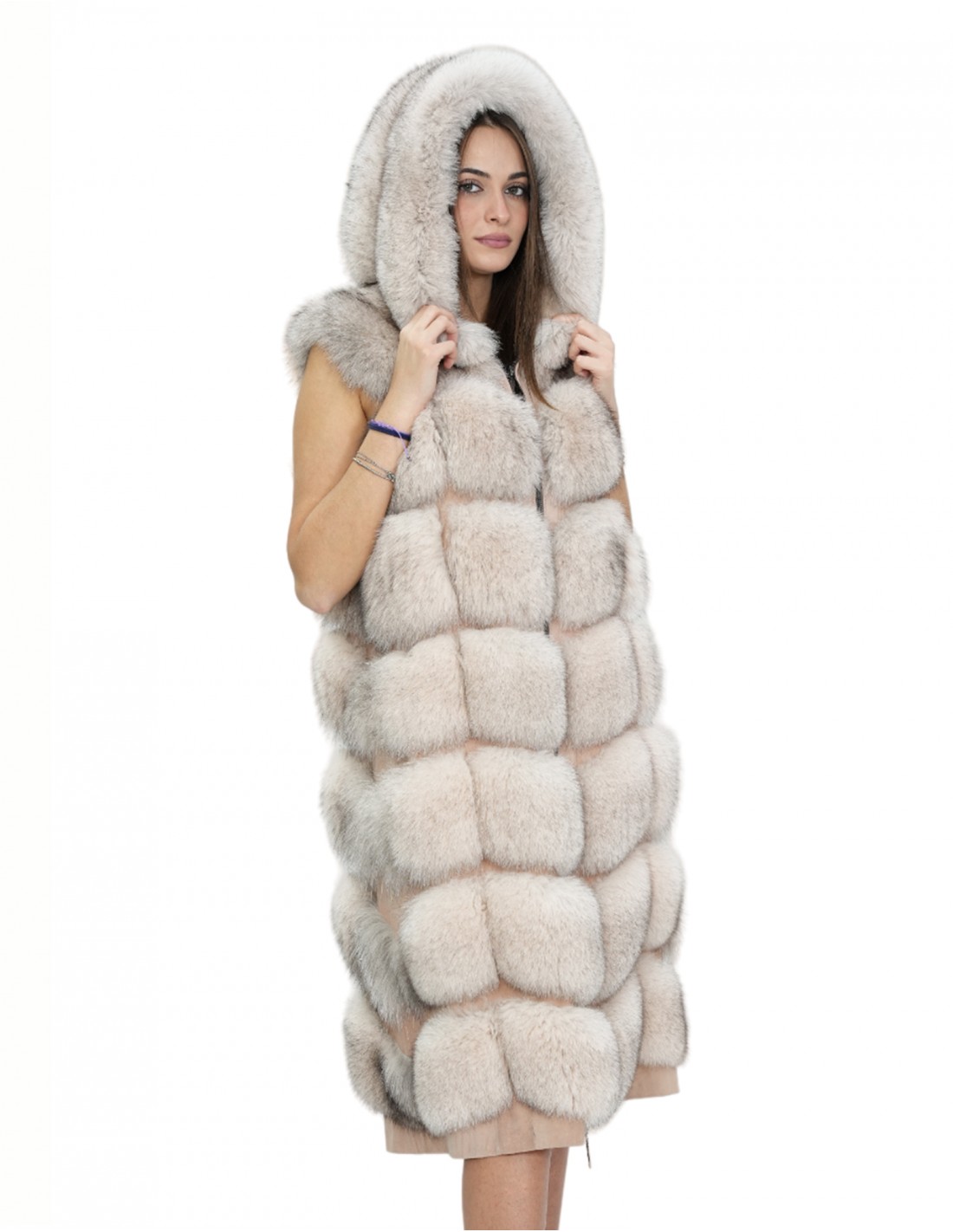Whole skin fox fur vest. Our fox furs are productions made in our laboratories, therefore a unique and exclusive fox jacket. The possibility of producing our furs of the highest quality allows us to make proposals at different prices with various opportunities at low prices always available. Furthermore, our laboratories and our collaborations guarantee fox fur of undisputed quality, 100% made in Italy. The quality of fox fur used for this is a fox fur vest with skins signed InModa Pellicceria. The 112 centimeter long fur vest with fox fur and real pink suede insert features external pockets, zip closure and hood lined with pink lining and external fur and all in pink.