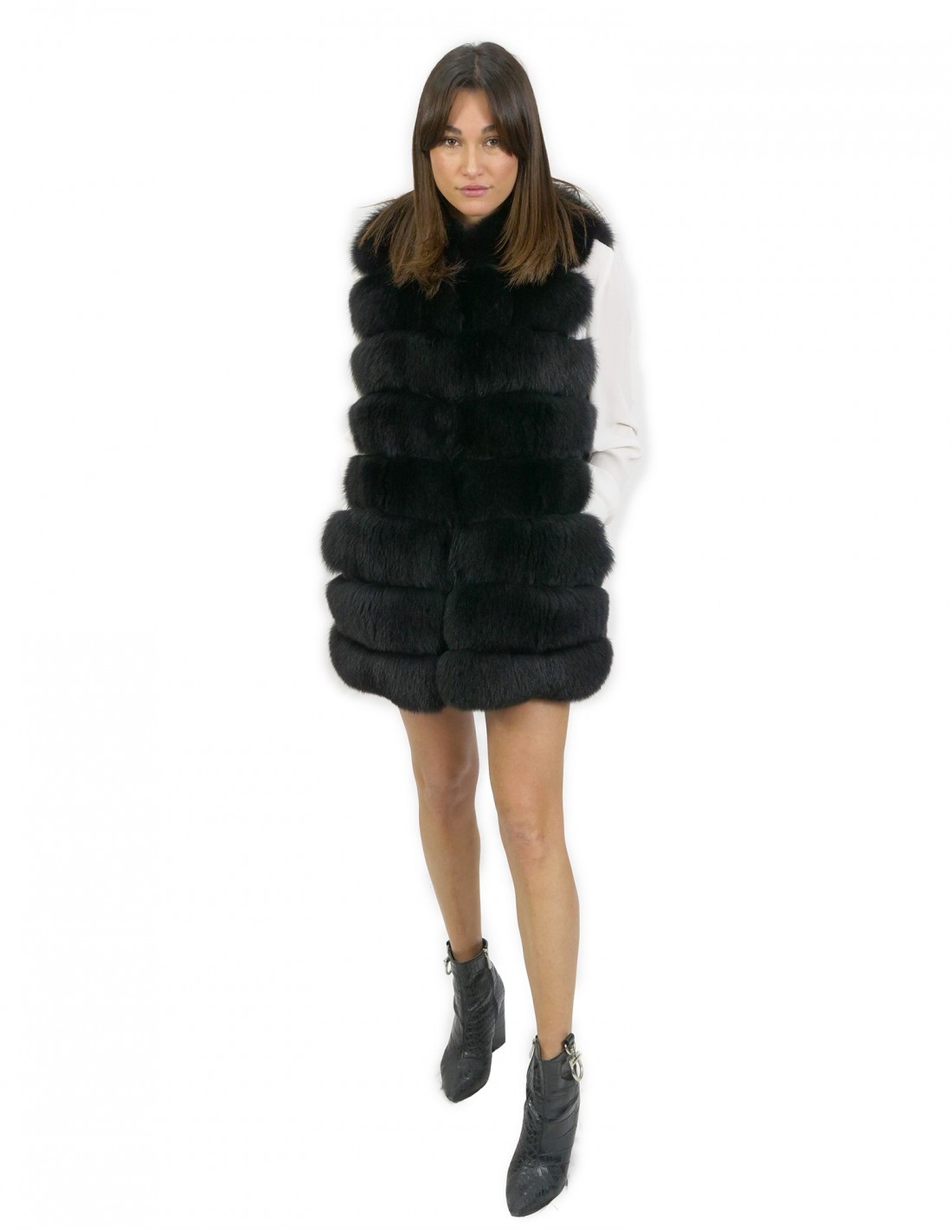 Fox fur gilet with whole skins. Our fox furs are productions made in our laboratories, therefore a unique and exclusive fox jacket. The possibility of producing our highest quality furs allows us to make proposals at different prices with various opportunities at low prices that are always available. Furthermore, our laboratories and our collaborations guarantee a fox fur of undisputed quality 100% made in Italy. The quality of fox fur used for this is a fox fur gilet with skins signed InModa Pellicceria. The fox fur gilet has external pockets, hook closure and black chanel collar.