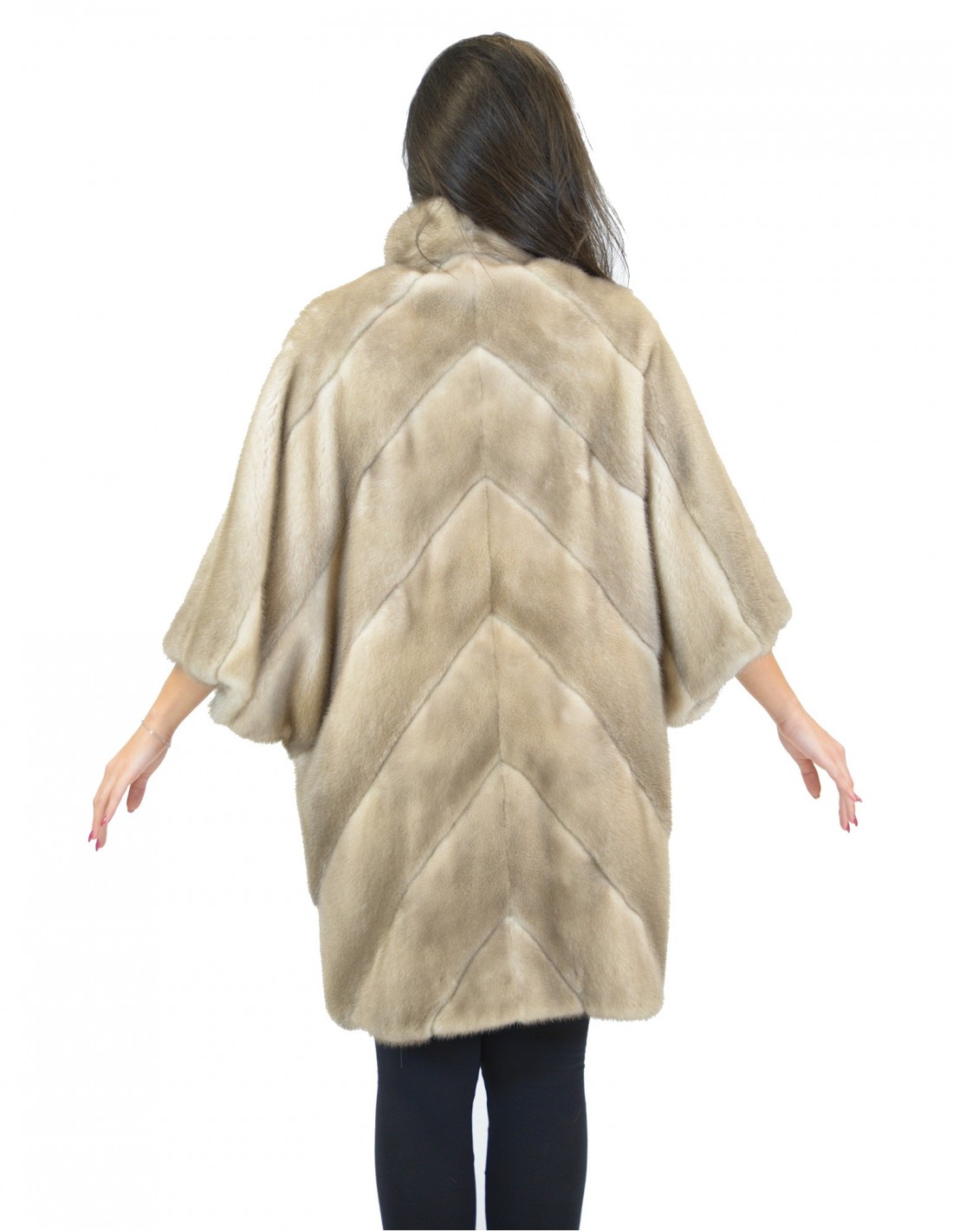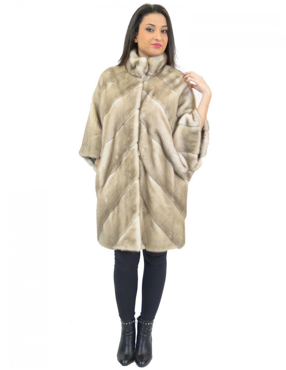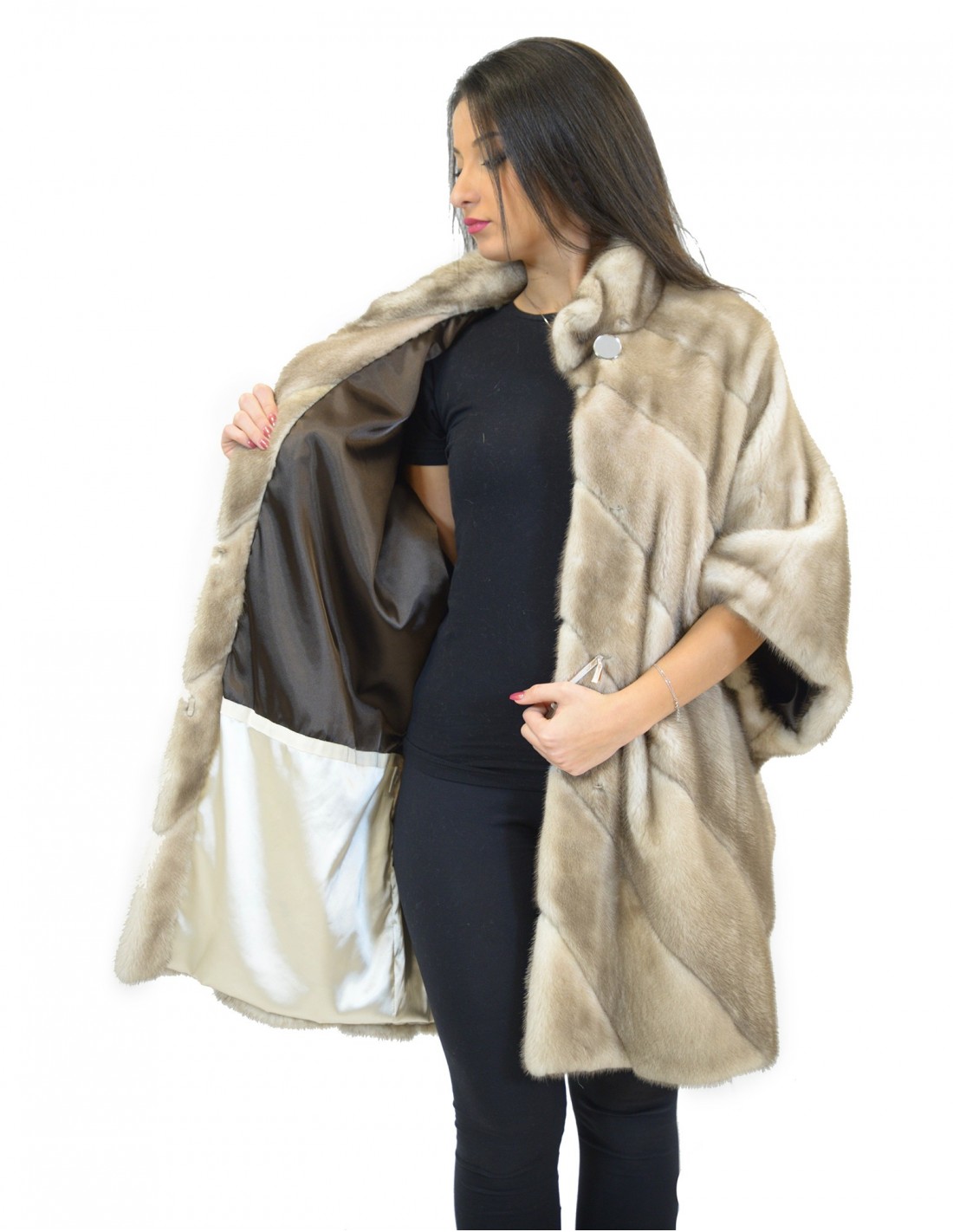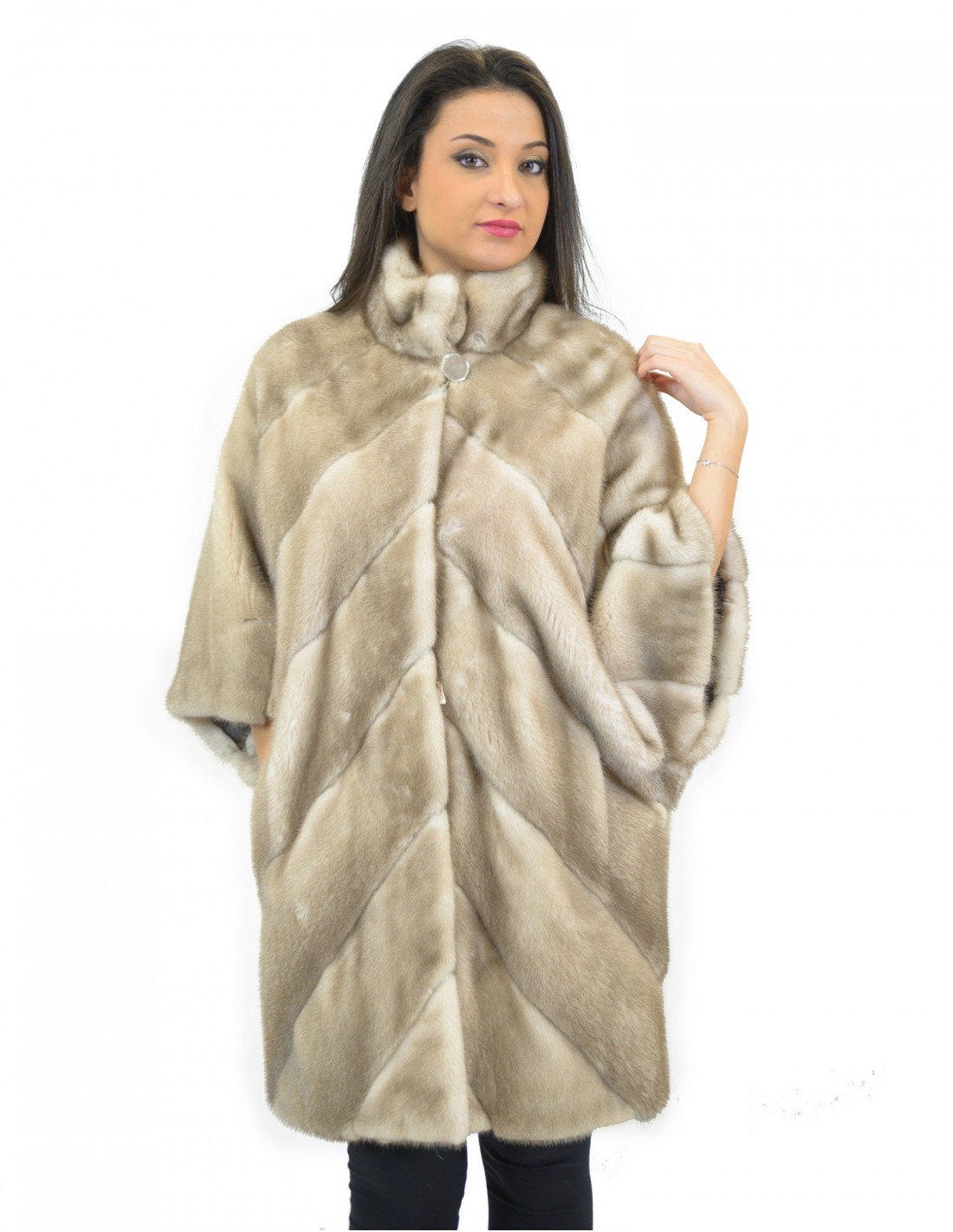 Mink fur cape with whole skins in transversal processing. Our mink furs are productions made in our laboratories, therefore a unique and exclusive mink cape. The possibility of producing our furs of the highest quality by selecting only female mink skins from exclusive farms allows us to make proposals at different prices with various bargains at low prices always available. Furthermore, our laboratories and our collaborations guarantee a mink fur of undisputed quality, 100% made in Italy. The quality of female mink fur used for this is a mink fur cape with pelts signed inmoda furrier. The mink fur cape comes in a loose model with sleeves in a splendid ice gray color.
