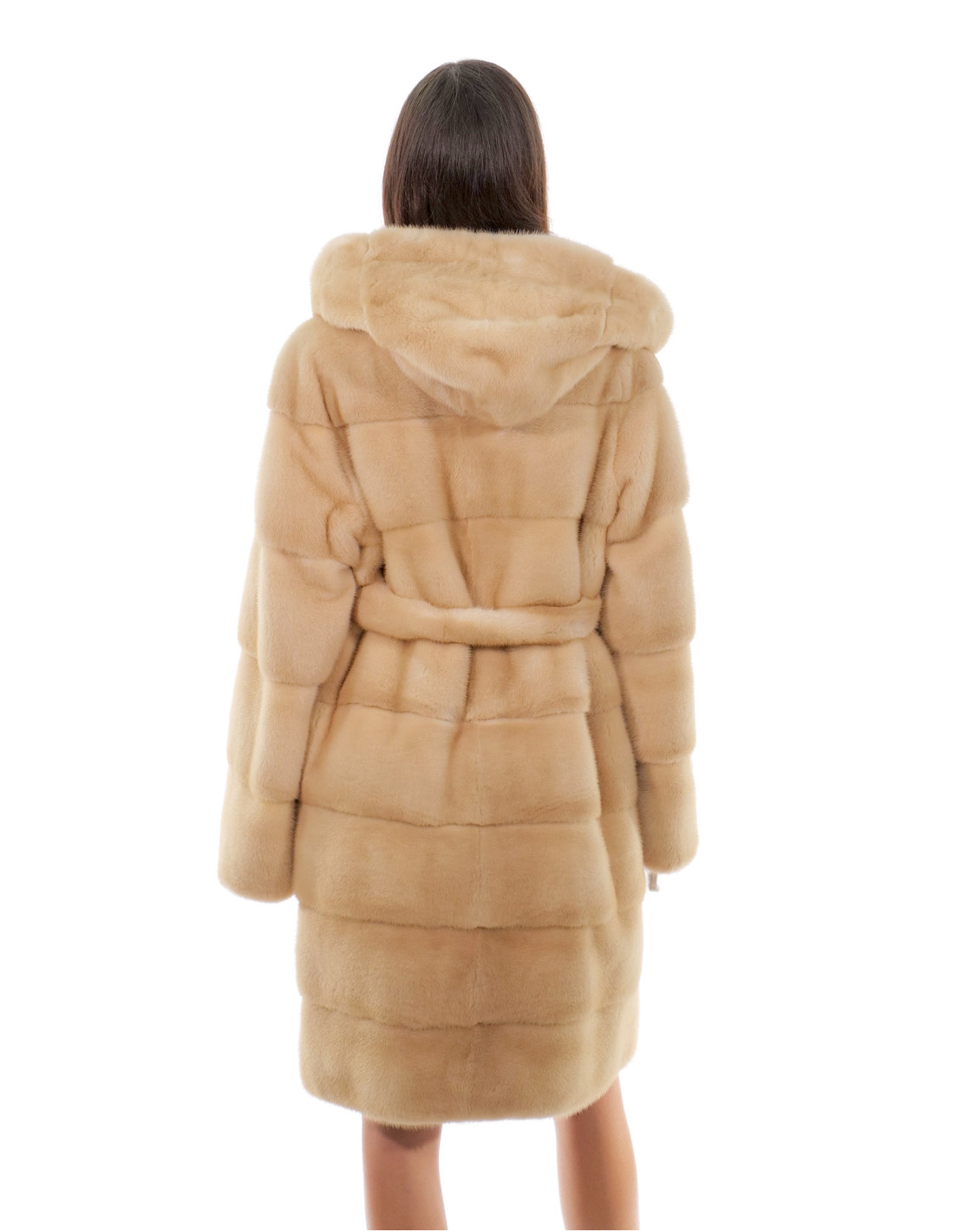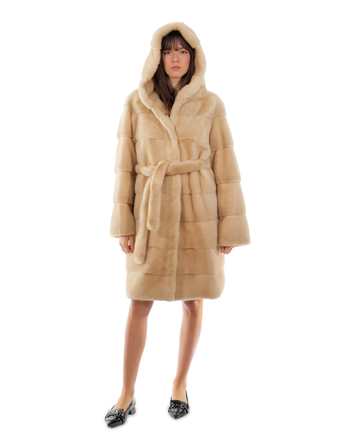 Coat 100 cm palomino mink long horizontal 46 long sleeve hood outer belt fur