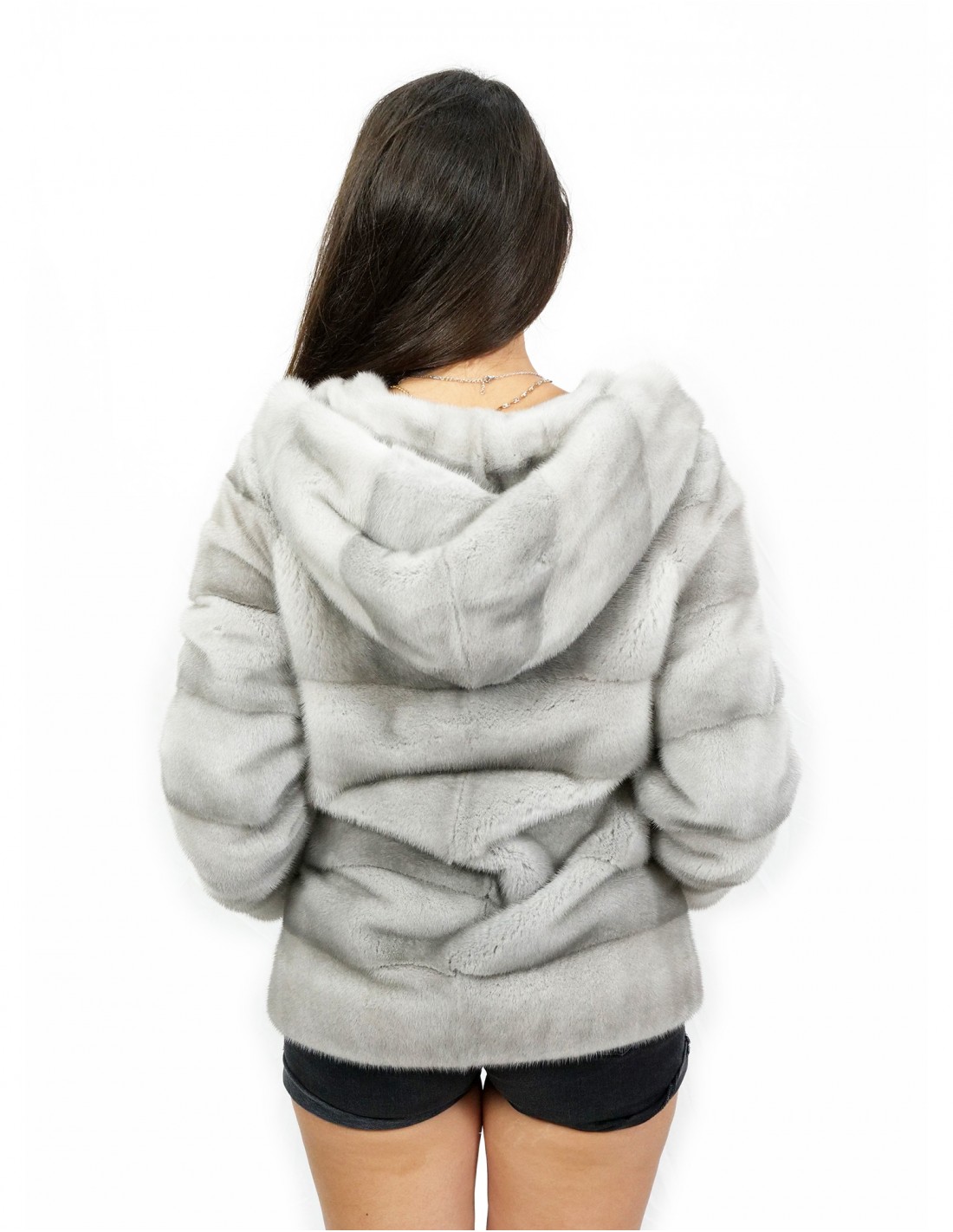 Mink jacket with whole skins in horizontal processing. Our mink furs are productions made in our workshops, therefore a unique and exclusive mink jacket. The possibility of producing our furs of the highest quality allows us to make proposals at different prices with various occasions at low prices always available. Furthermore, our laboratories and our collaborations guarantee a mink fur of undisputed quality 100% made in Italy. The quality of female mink fur used for this is a mink fur jacket with Kopenaghen furs branded skins. The mink fur jacket is presented in horizontal processing, in a splendid sapphire color with a beautiful hood lined in whole mink skins, zip closure, long sleeves and normal external pockets.