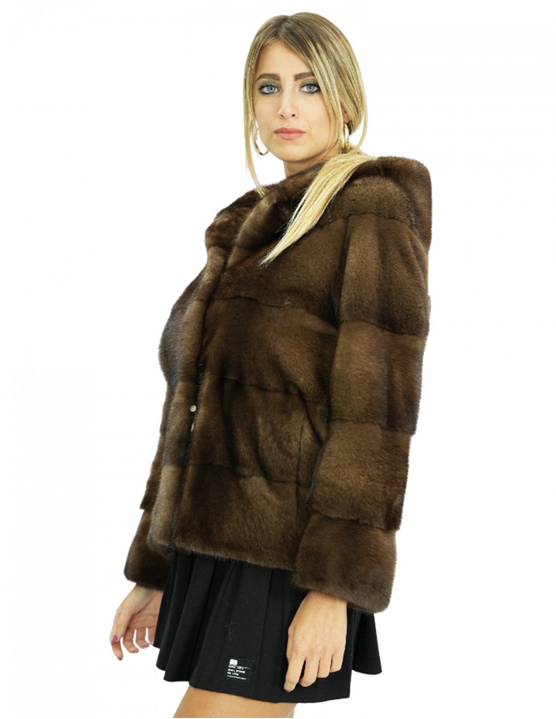 Demi color horizontal full skin mink fur jacket with fur lined hood. Our mink furs are productions made in our laboratories, therefore a unique and exclusive mink jacket. The possibility of producing our furs of the highest quality allows us to make proposals at different prices with various opportunities at low prices always available. Furthermore, our laboratories and our collaborations guarantee a mink fur of undisputed quality, 100% made in Italy. The quality of female mink fur used for this is a mink fur jacket with skins signed In Copenhagen furs. The mink fur jacket in horizontal processing, 60 centimeters long, long sleeves, closure with internal hooks and hood lined with demi mink skins.