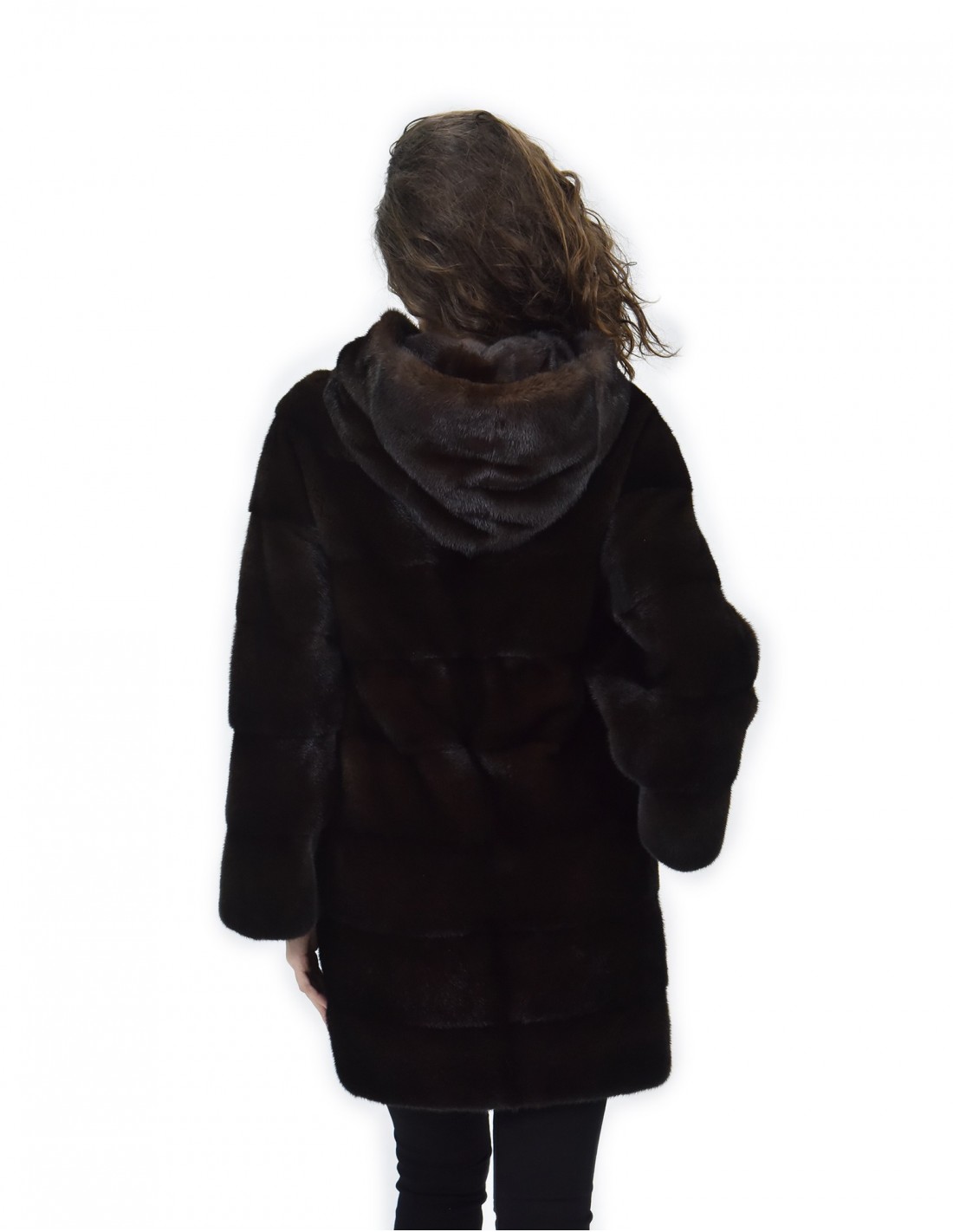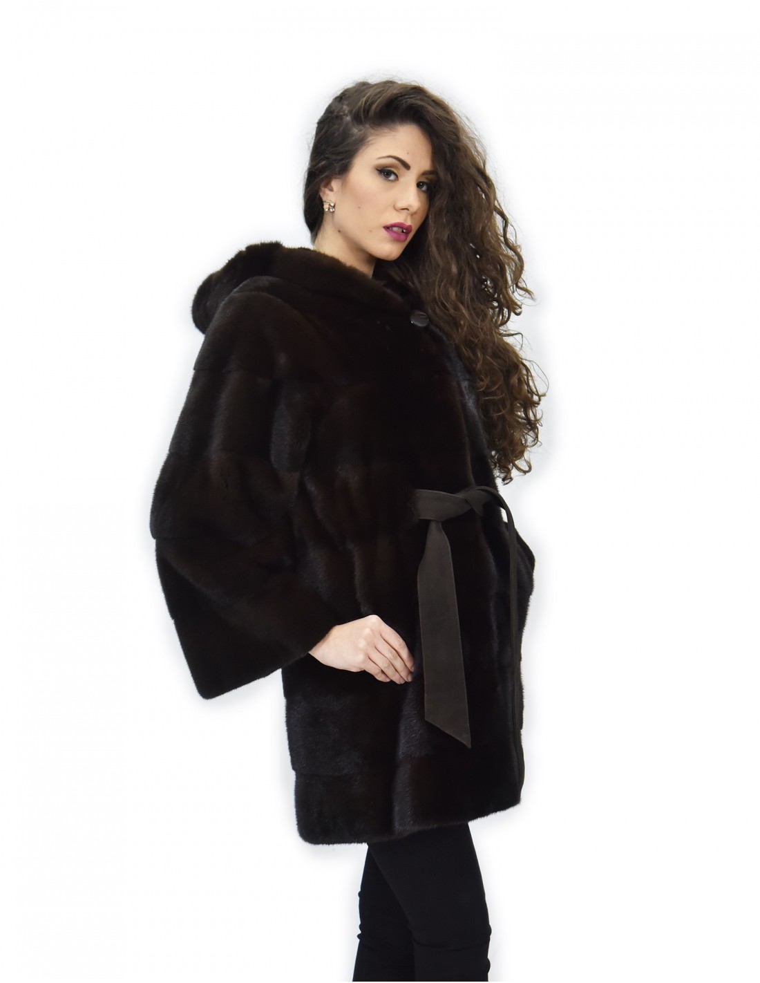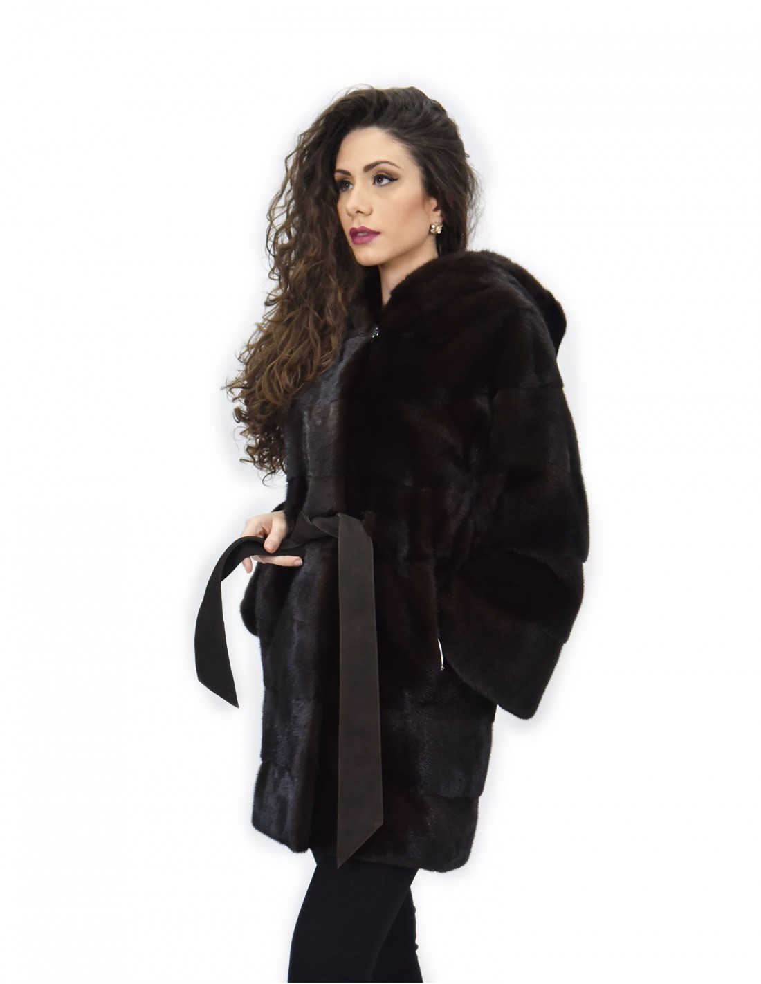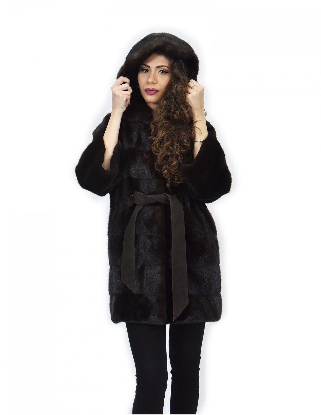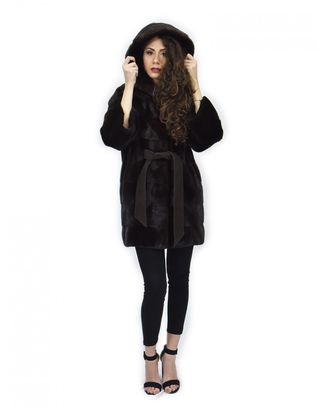 mink coat to entire skins in horizontal machining. Our mink furs are productions made in our laboratories, and a unique and exclusive mink coat. The ability to produce our high quality fur allows us to make proposals at different prices with different occasions at low prices always available. In addition, our laboratories and our collaborations provide a mink coat of exceptional quality 100% made in Italy. The quality of female mink coat used for this is a mink fur jacket with initialed Saga furs skins. The mahogany color coat of mink fur occurs along 86 cm with a beautiful lined hood mink pelts, long sleeve, in mink fur whole hides horizontal machining, closing hooks, button on the neck and belt suede, normal external pockets .