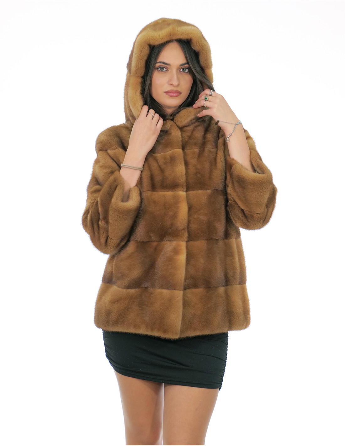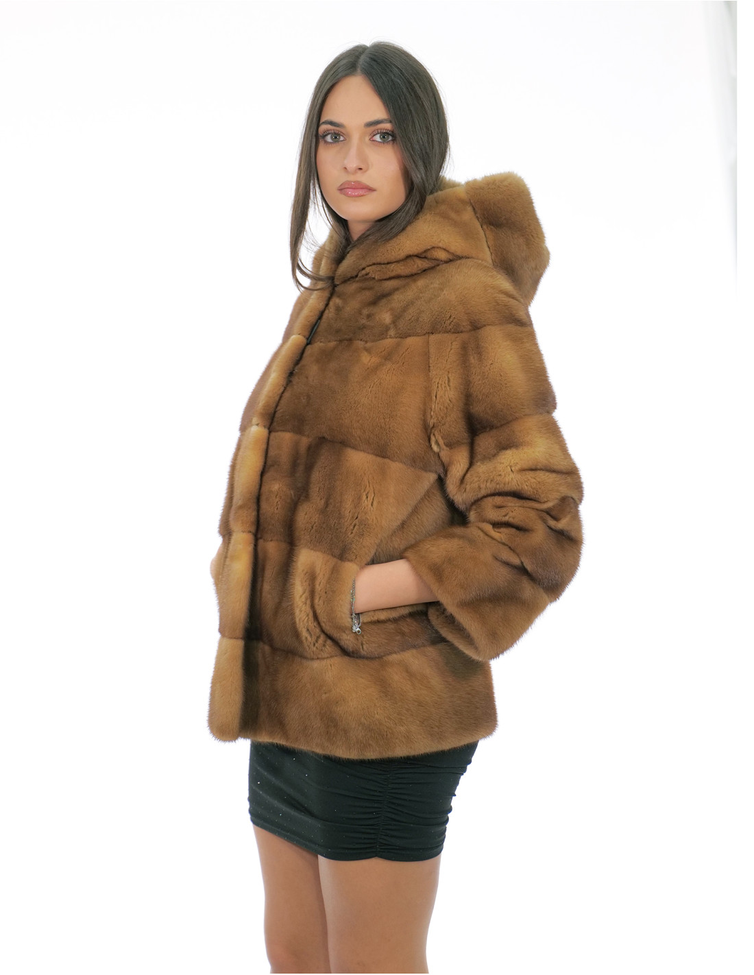 Fur Jacket Mink Full Leather Horizontal Gold 52 Hood Three-Quarter Sleeve Exterior Pockets and Interior Pocket Original price was: 2.790,00 €.Current price is: 2.232,00 €.