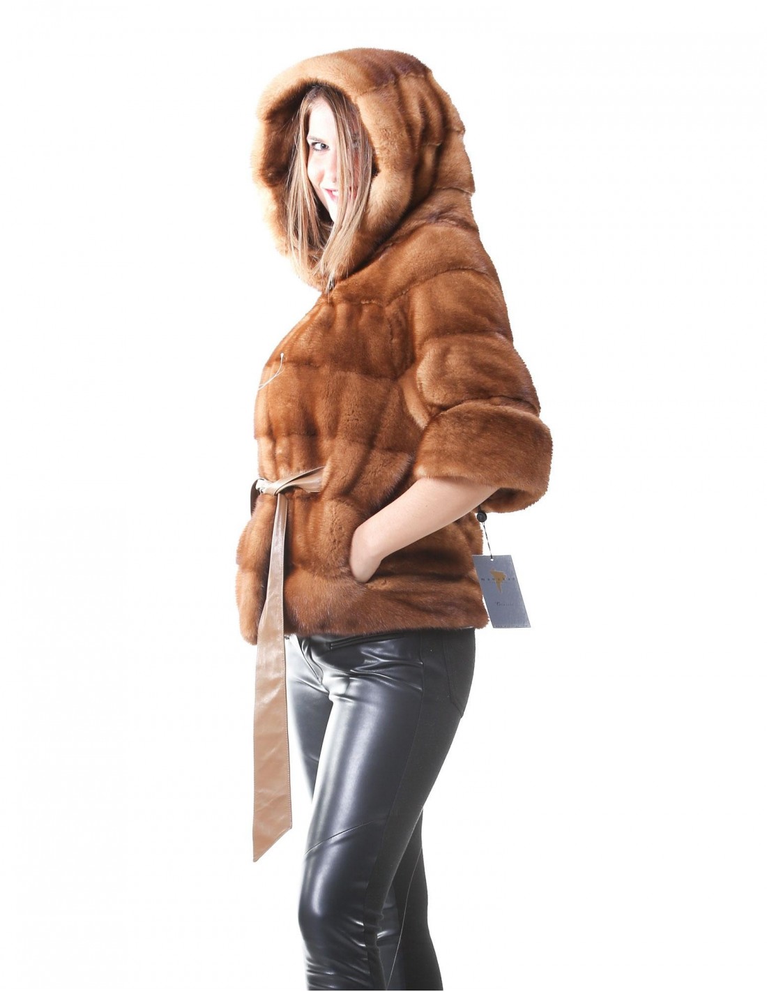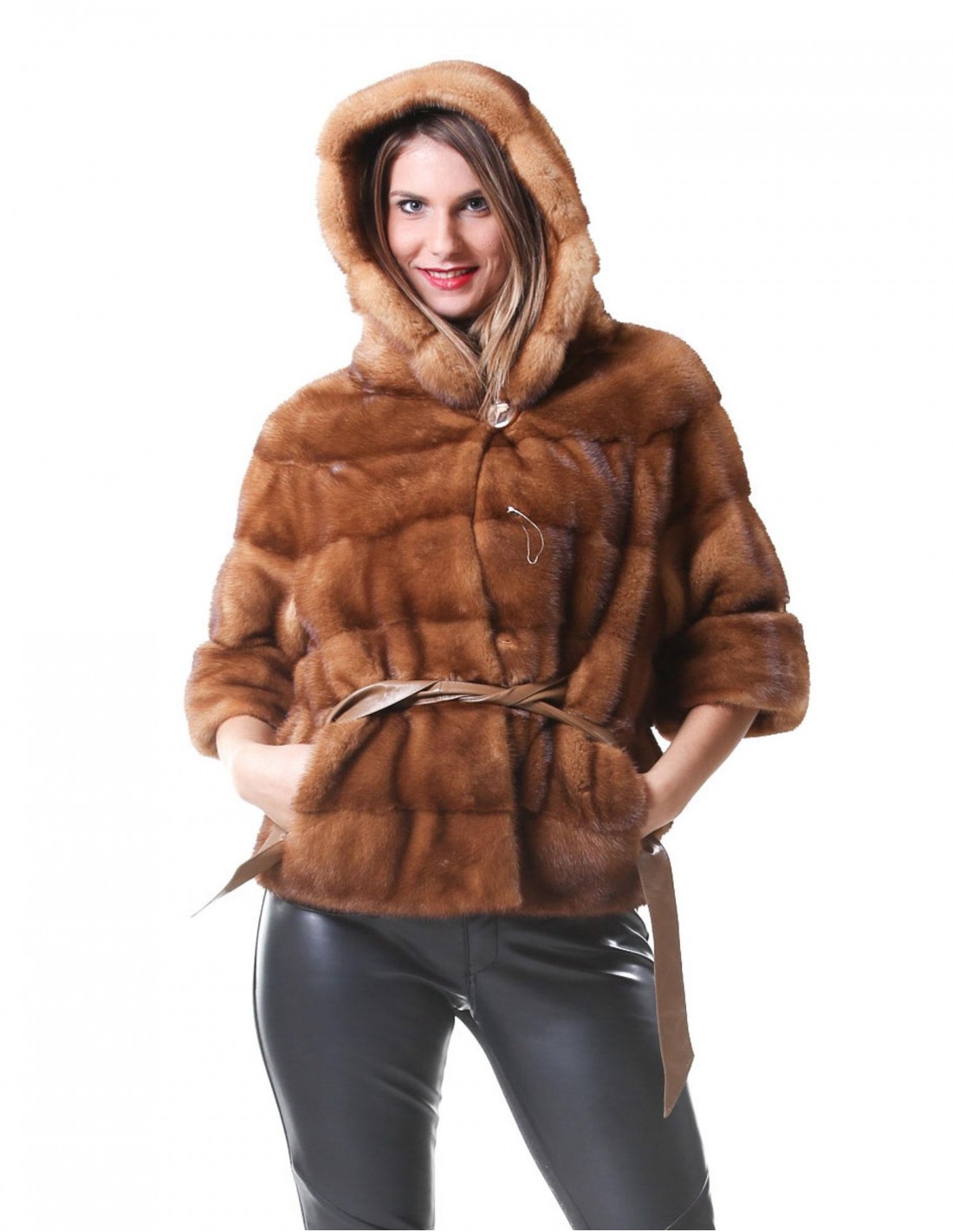 48 pelliccia visone giacca donna modello kimono scanbrown