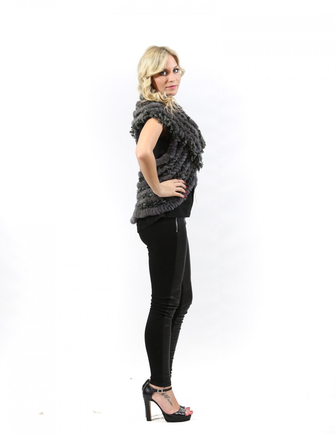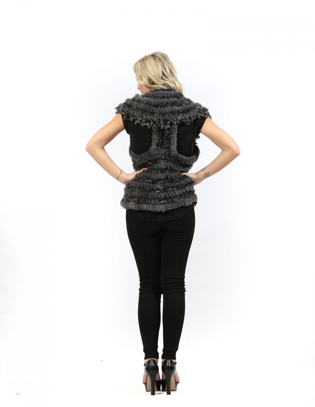 Home » Shop » Fur vests woman in gray rabbit fur fringed with broad and round neck