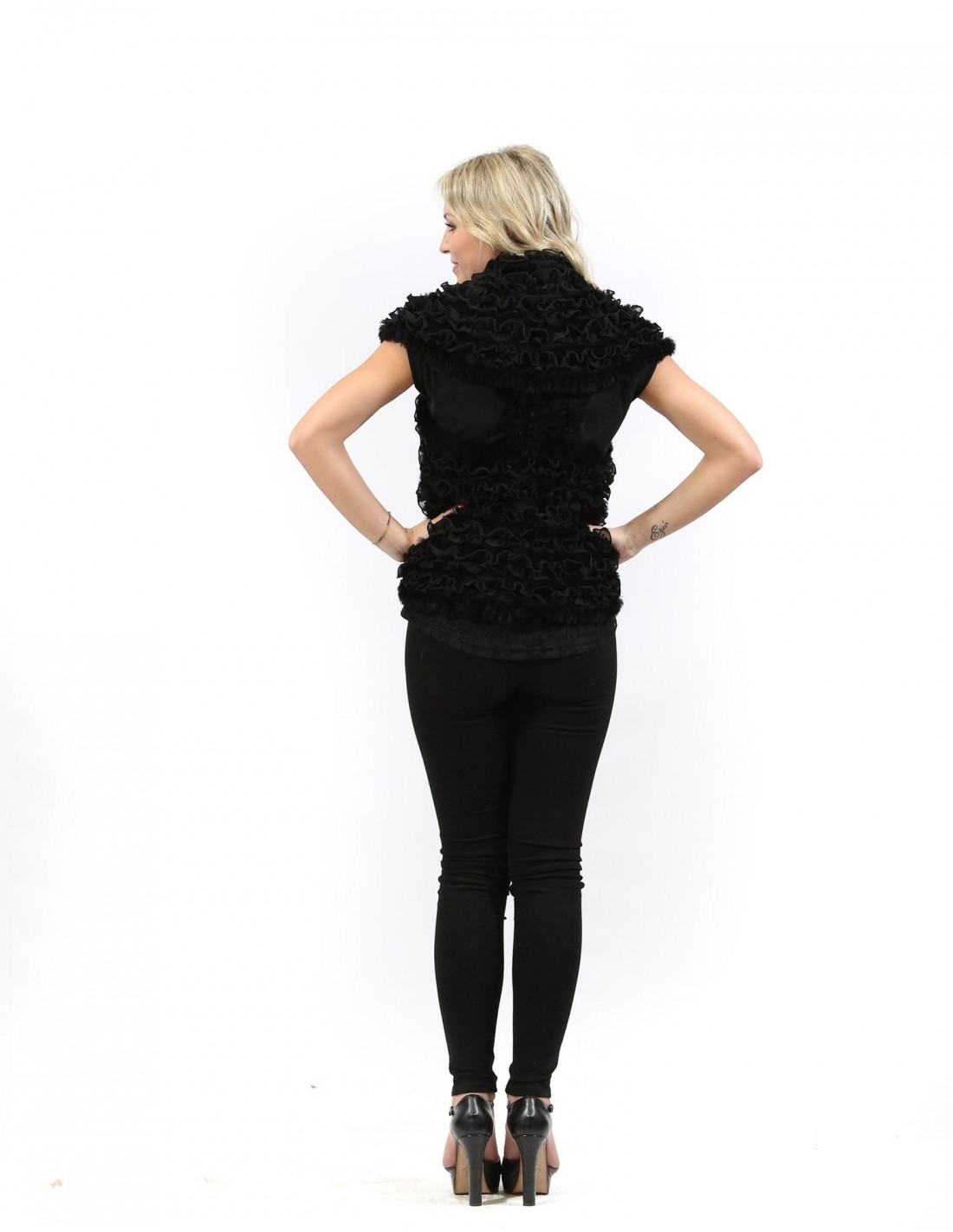 Fur vests black lapin rouge woman with fabric inserts and wide neck
