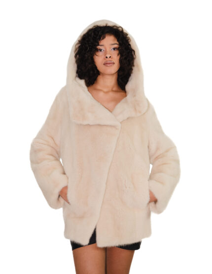 Horizontal mink coat 44 beige fur full sleeve mink collar hook closure
