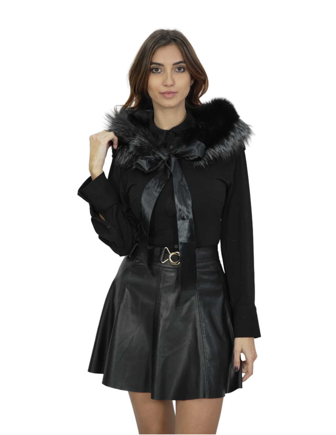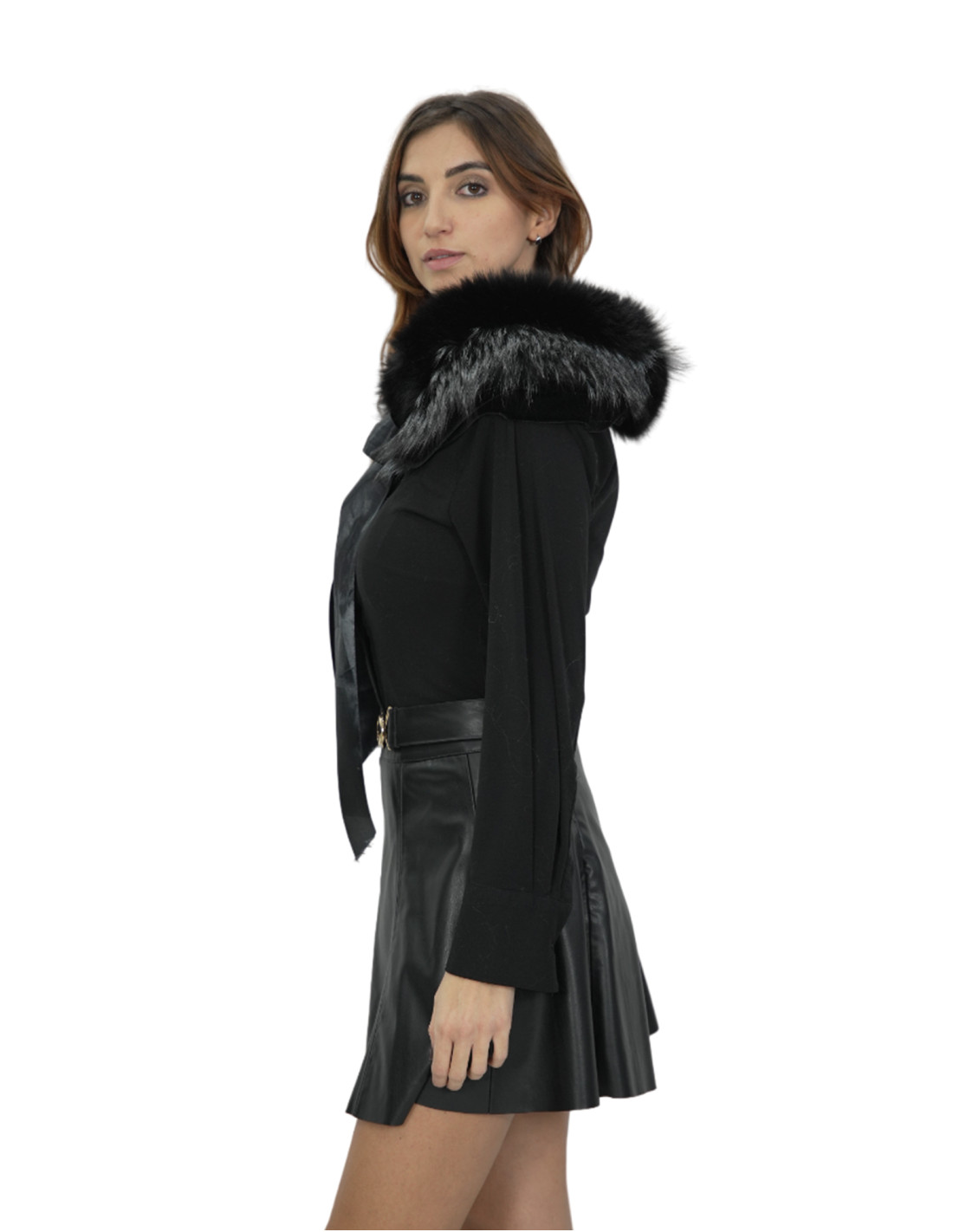 Colletto in pelliccia di volpe nero e grigio con lacci decorativi in raso