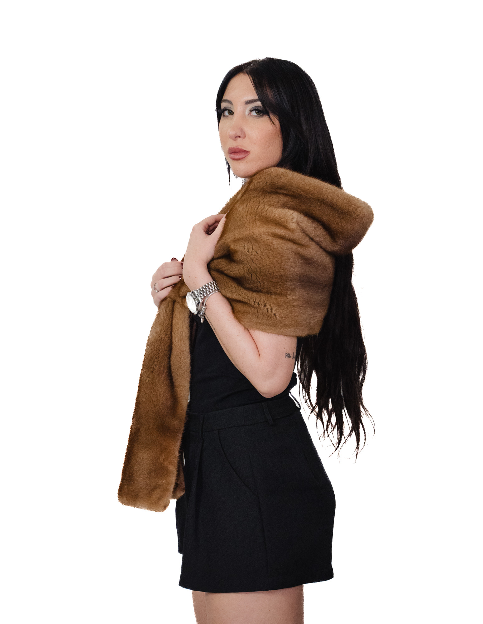 Stola in pelliccia di visone a pelle intera gold oro con asola grande di chiusura lunga 148 centimetri Kopenaghen Furs