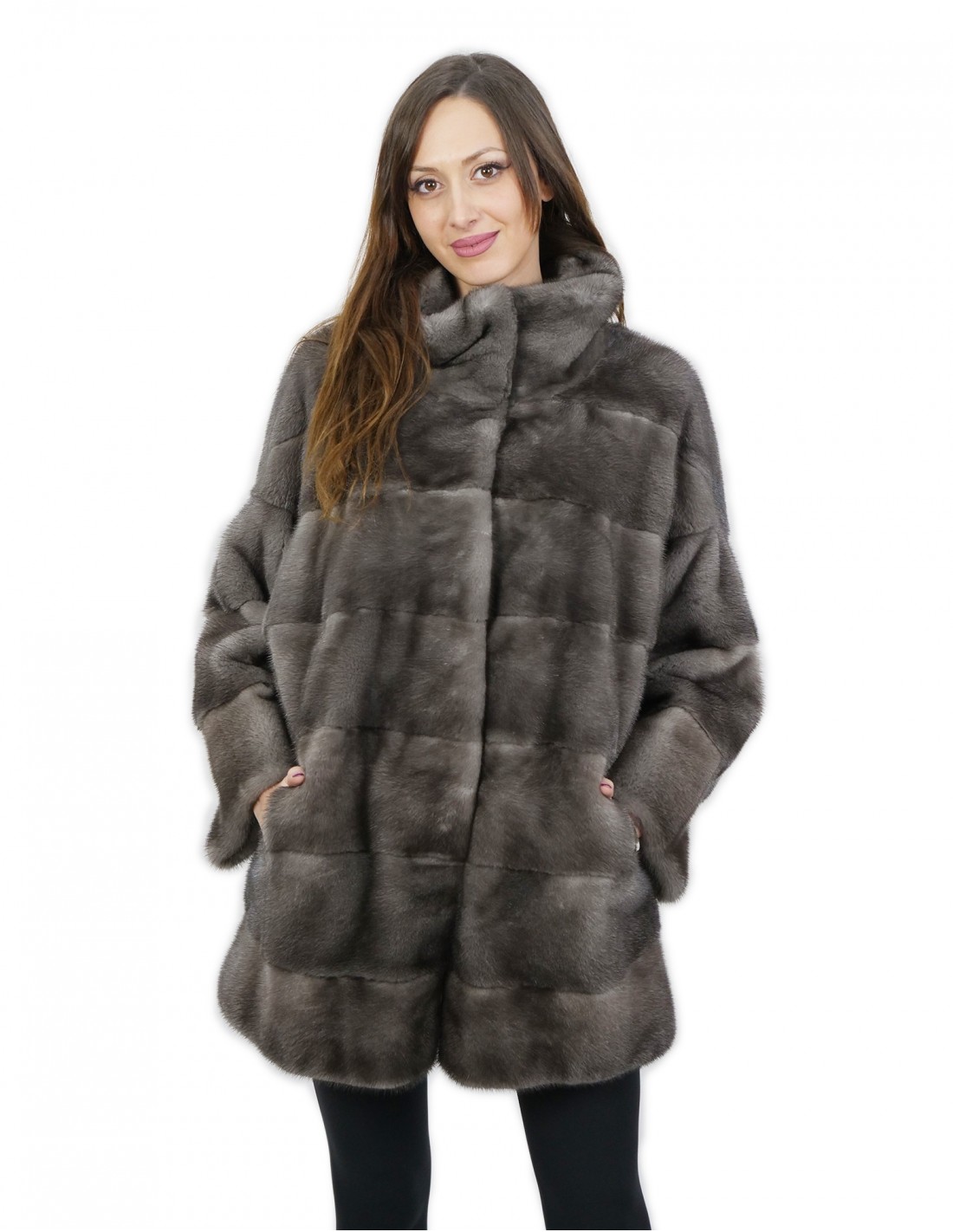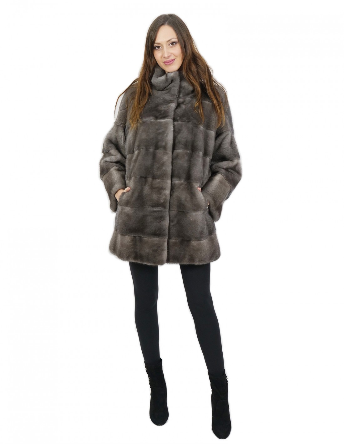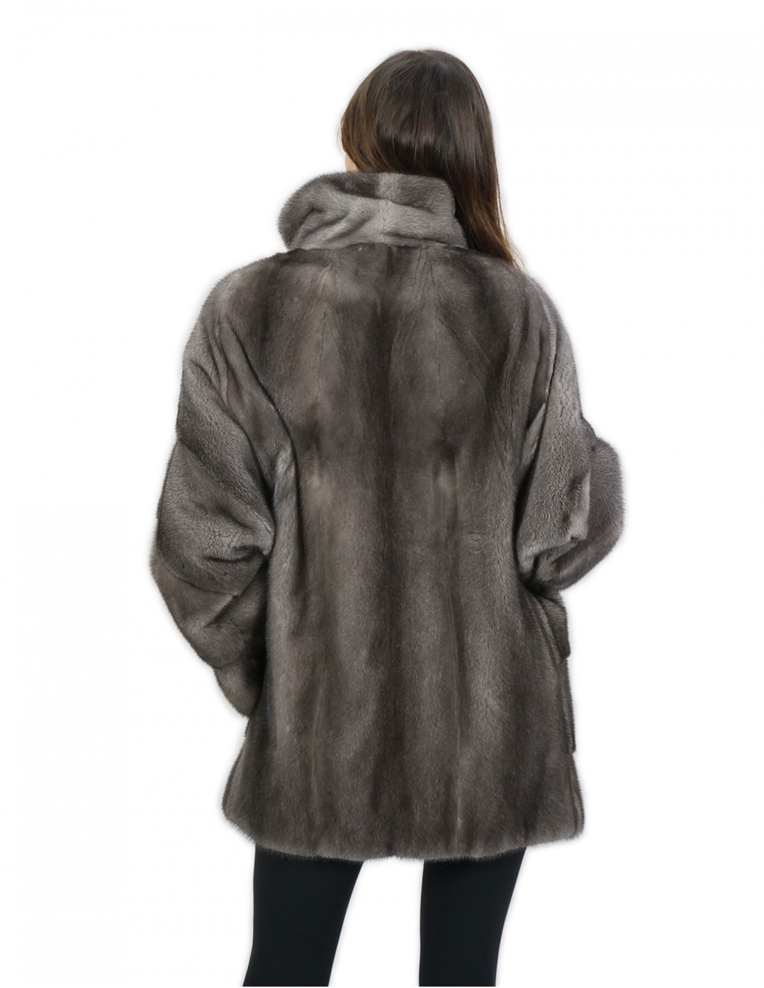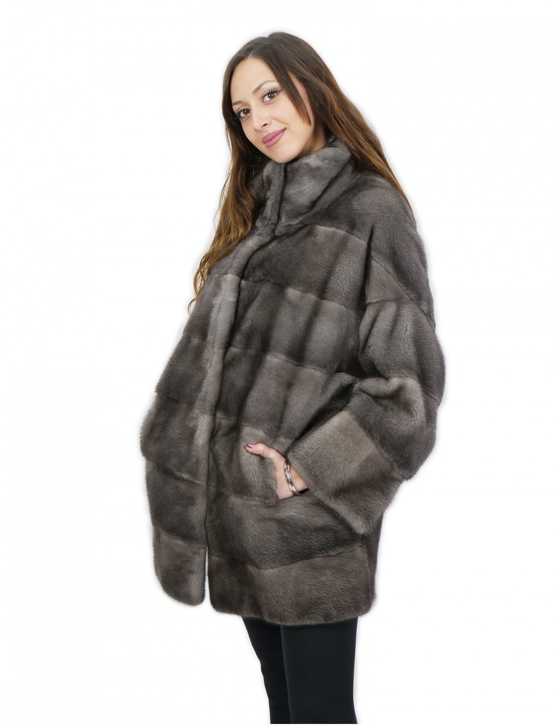 Giacca di visone a pelli intere in lavorazione orizzontale e spalle in pelle intera. Le nostre pellicce di visone sono produzioni realizzate dei nostri laboratori, quindi una giacca di visone unica ed esclusiva. La possibilità di produrre le nostre pellicce di altissima qualità ci consente di fare proposte a differenti prezzi con svariate occasioni a prezzi bassi sempre disponibili. Inoltre i nostri laboratori e le nostre collaborazioni garantiscono una pelliccia di visone di indiscussa qualità 100% made in italy. La qualità di pelliccia di visone femmina utilizzata per questa è una giacca di pelliccia di visone con pelli siglate kopenaghen furs. La giacca di pelliccia di visone in lavorazione orizzontale e alle spalle in pelli intere, lunga 78 centimetri si presenta con tasche esterne, chiusura ganci e collo pistagna, manica a 3/4 in colore blu iris