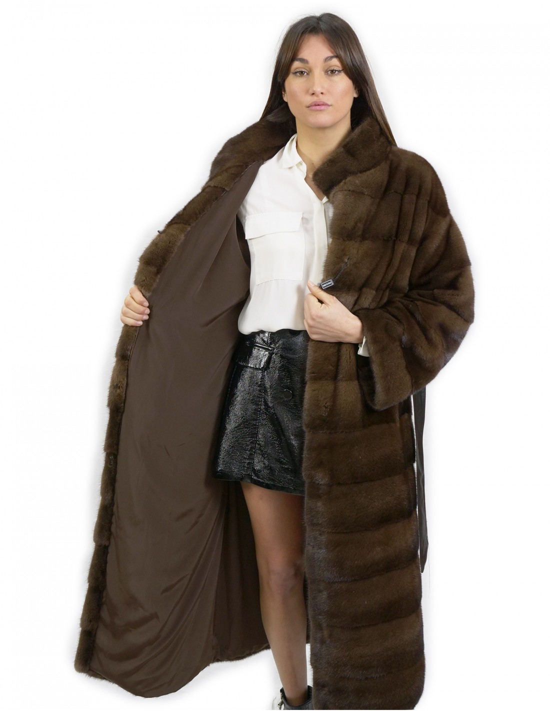 Cappotto 120 centimetri demi 50 con cintura pelle pelliccia visone con manica lunga orizzontale collo pistagna