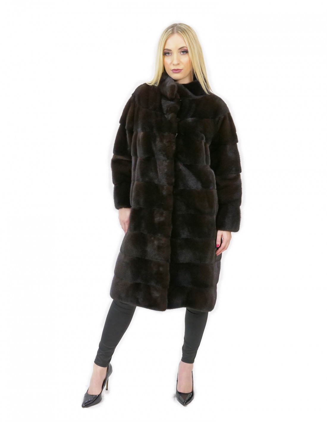 Cappotto 52 lungo 100 cm pelliccia visone donna mogano collo alto manica 3/4