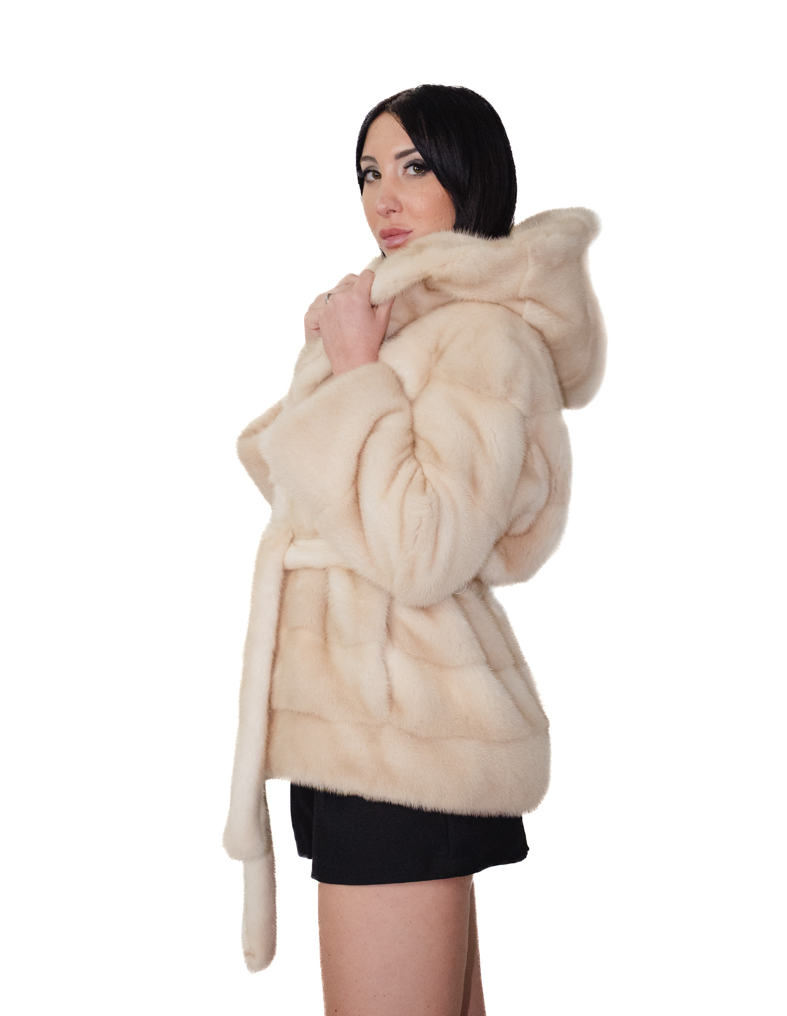 Cappotto in pelliccia di visone a pelli intere con lavorazione orizzontale. Le nostre pellicce di visone sono produzioni realizzate dei nostri laboratori, quindi una giacca di visone unica ed esclusiva. La possibilità di produrre le nostre pellicce di altissima qualità ci consente di fare proposte a differenti prezzi con svariate occasioni a prezzi bassi sempre disponibili. Inoltre i nostri laboratori e le nostre collaborazioni garantiscono una pelliccia di visone di indiscussa qualità 100% made in italy. La qualità di pelliccia di visone femmina utilizzata per questa è una giacca di pelliccia di visone con pelli siglate InModa Pellicceria. La giacca di pelliccia di visone in lavorazione orizzontale si presenta con cappuccio foderato in pelliccia di visone, cintura in pelliccia esterna, tasche esterne e una tasca interna, chiusura ganci il tutto colore beige.