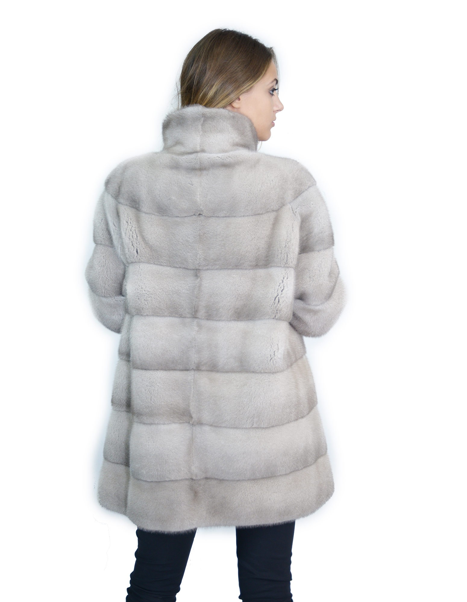 Cappotto visone orizzontale silverblu 81 cm collo coreana 52-54 fourrure de vison mink fur Nerz