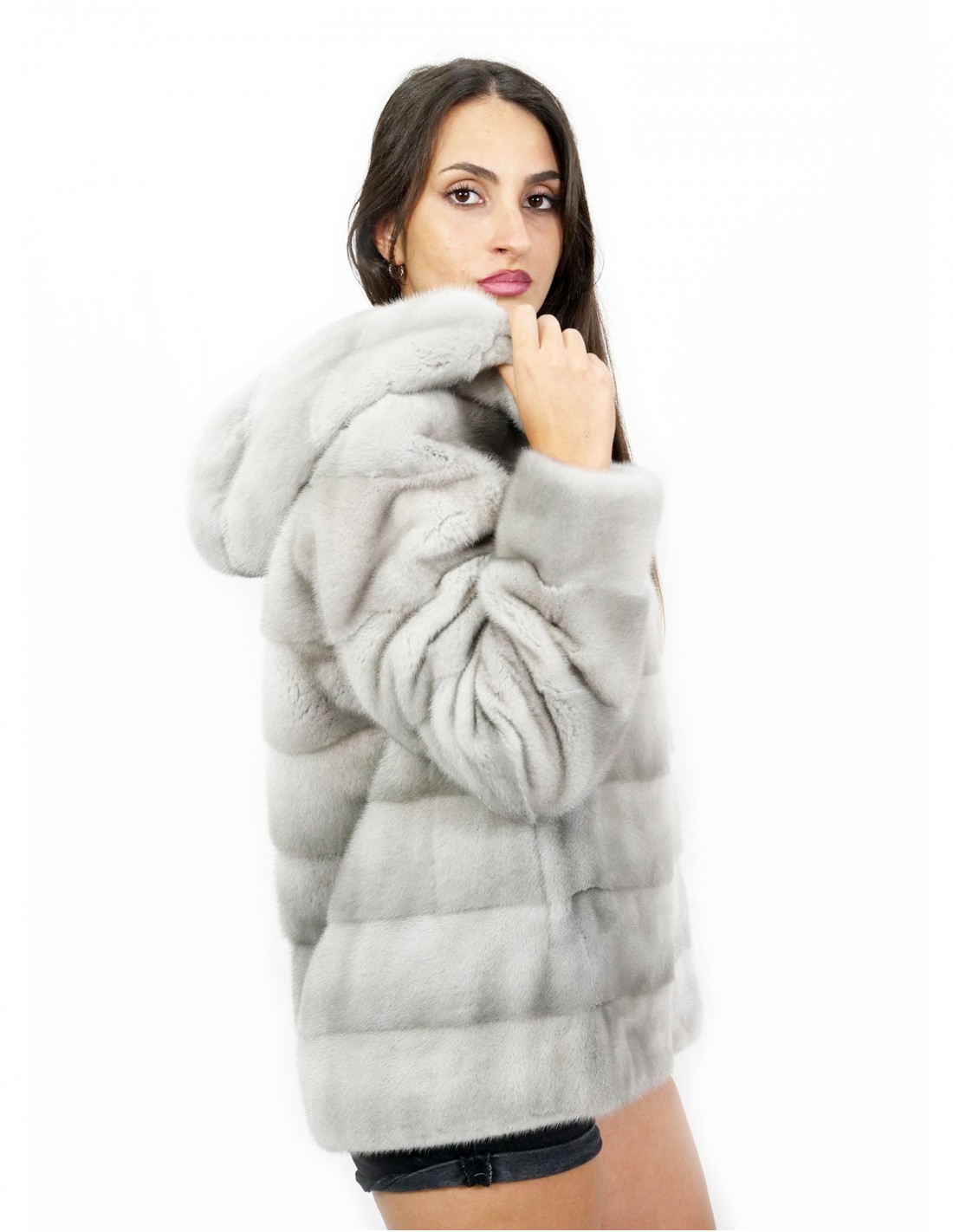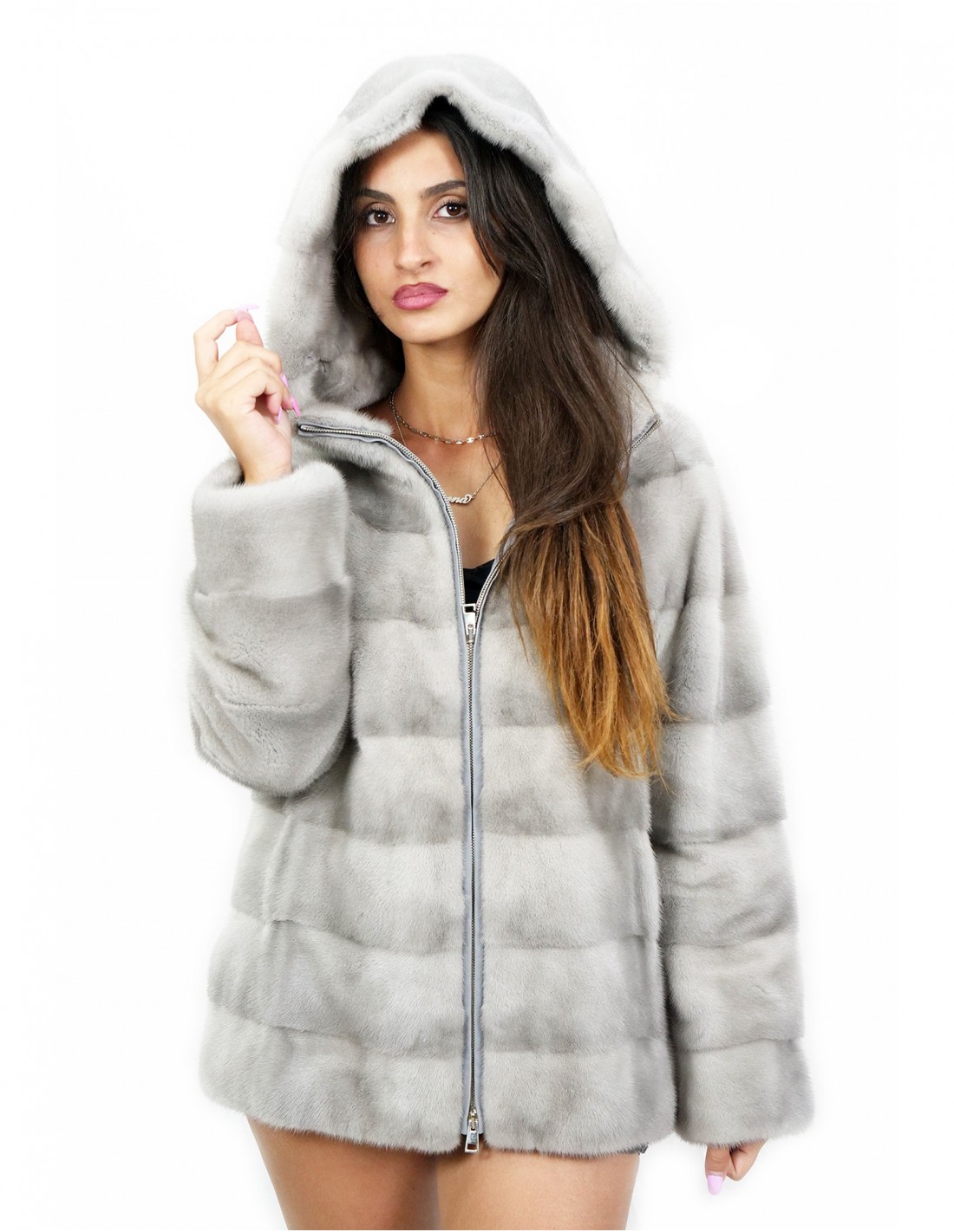 Home » Shop » Giacca pelliccia zip visone orizzontale zaffiro 42 cappuccio manica lunga pelle