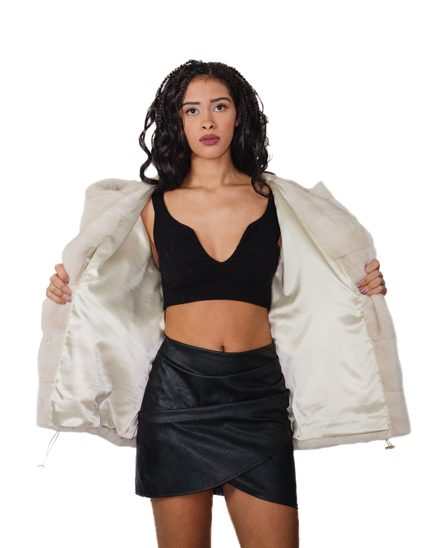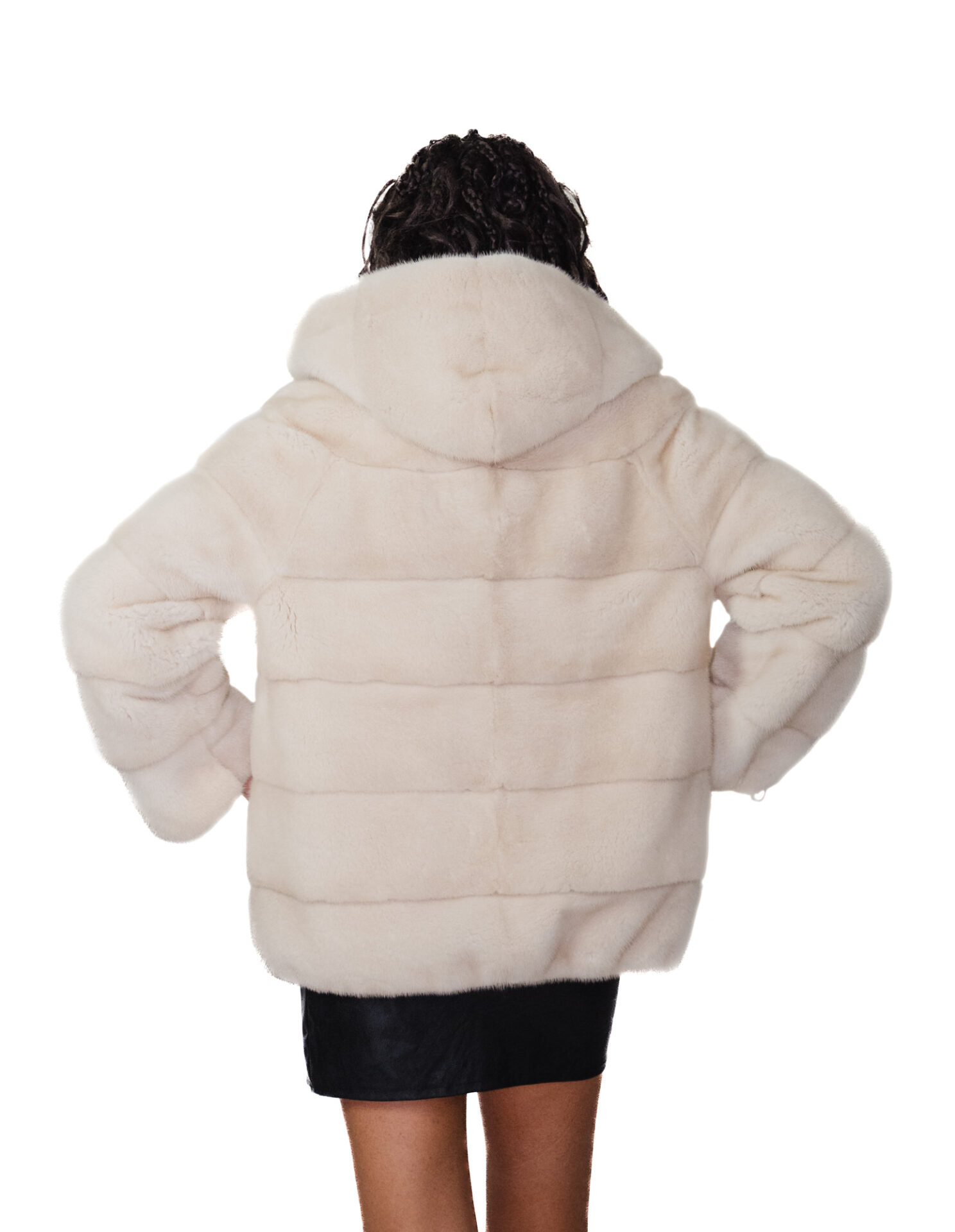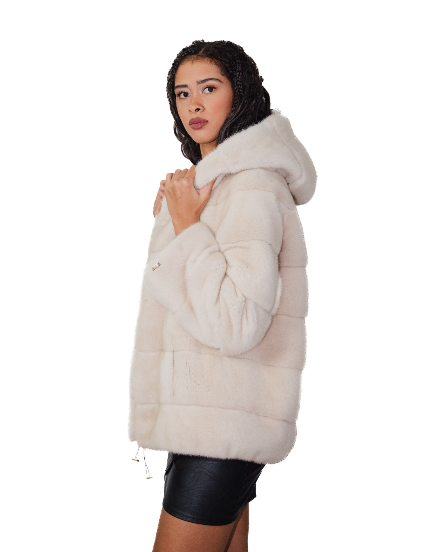 Cappotto in pelliccia di visone a pelli intere con lavorazione orizzontale. Le nostre pellicce di visone sono produzioni realizzate dei nostri laboratori, quindi una giacca di visone unica ed esclusiva. La possibilità di produrre le nostre pellicce di altissima qualità ci consente di fare proposte a differenti prezzi con svariate occasioni a prezzi bassi sempre disponibili. Inoltre i nostri laboratori e le nostre collaborazioni garantiscono una pelliccia di visone di indiscussa qualità 100% made in italy. La qualità di pelliccia di visone femmina utilizzata per questa è una giacca di pelliccia di visone con pelli siglate Kopenaghen Furs. La giacca di pelliccia di visone in lavorazione orizzontale orizzontale con coulisse sul fondo elastico, manica lunga, chiusura con ganci interni, cappuccio foderato in pelliccia di visone, il tutto colore beige definito perla.